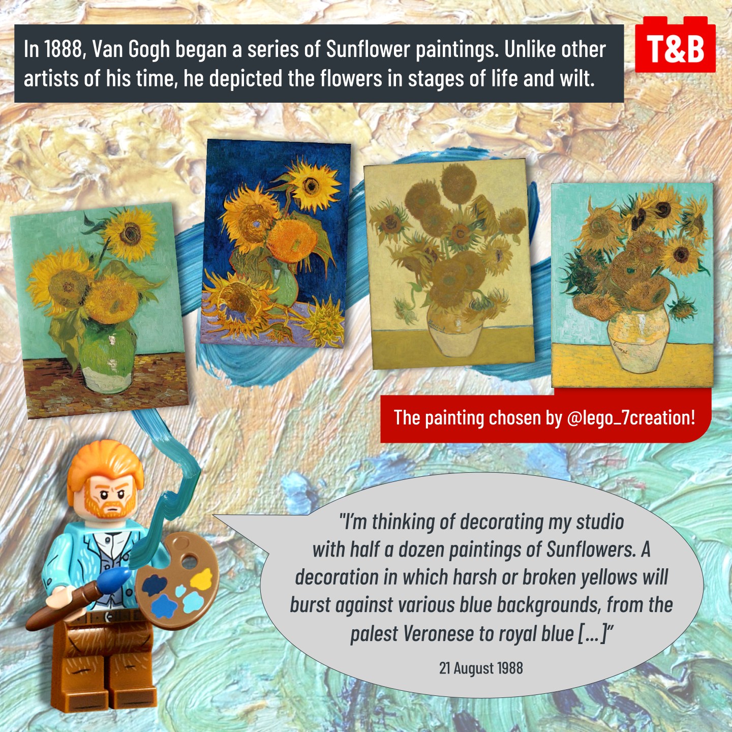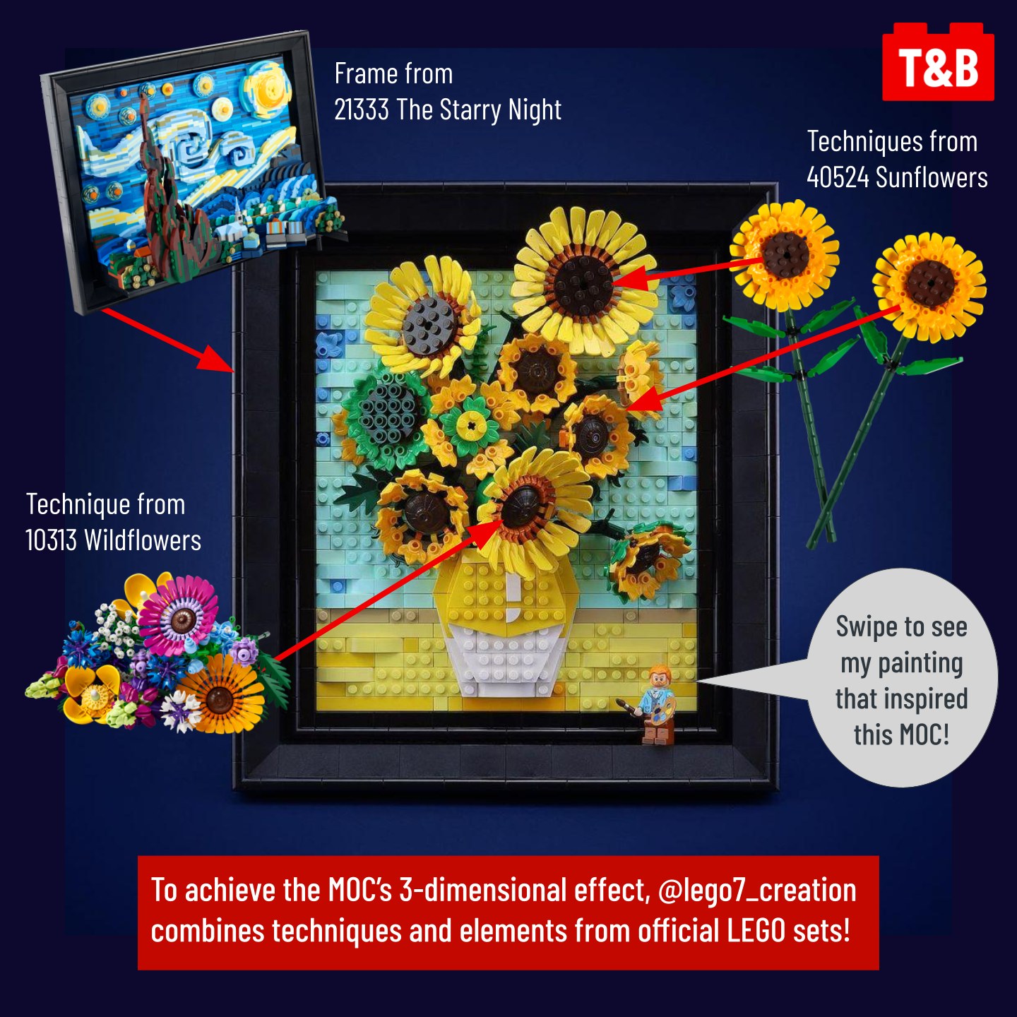 This striking MOC is a work of art- literally! In this post, we explain how this build and its techniques replicate concepts found in Van Gogh’s original painting. Follow @lego7_creation to see more of their incredible builds, and check out the Van Gogh’s Sunflowers MOC in person if you are in Taipei!