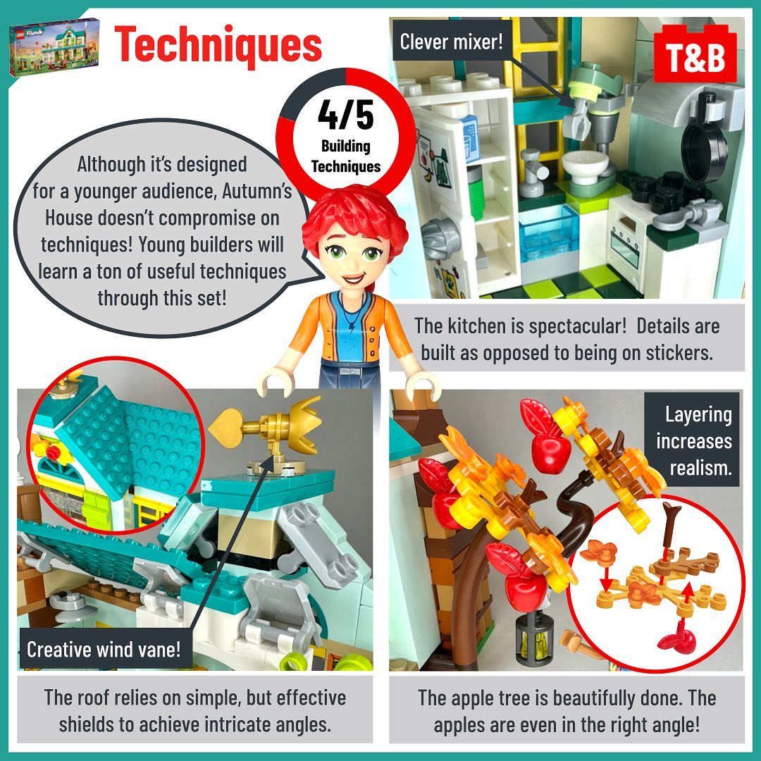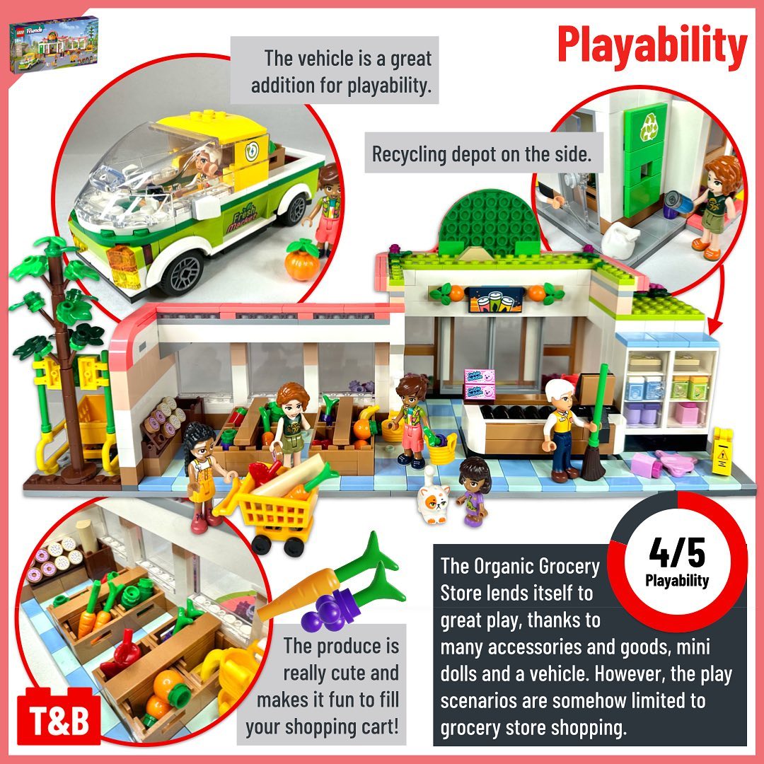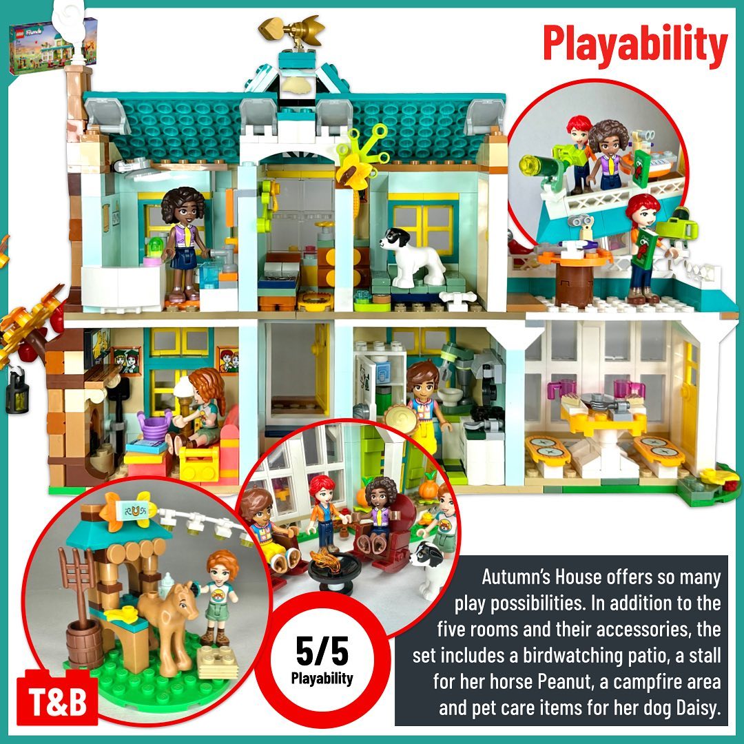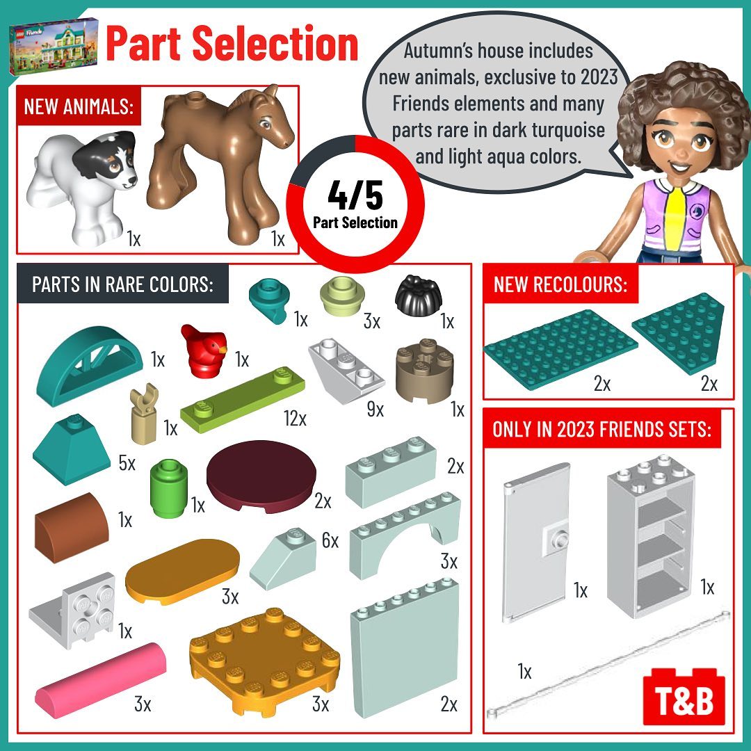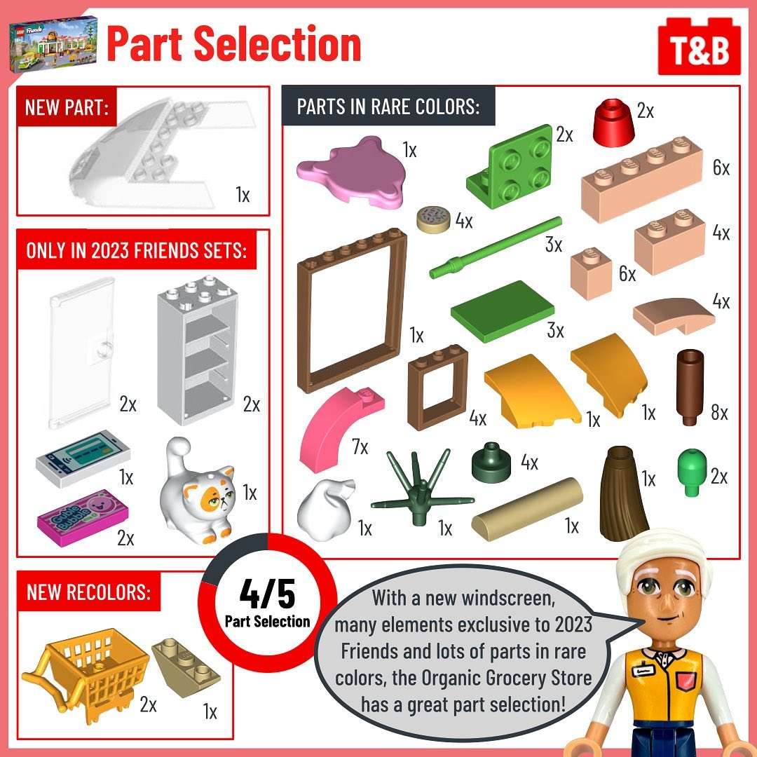Autumn, one of the new 2023 LEGO Friends, appears in two similar size sets: 41729: Organic Grocery Store (€/$ 89.99 – £ 79.99 for 830 parts) and 41730: Autumn’s House (€/$ 69.99 – £ 59.99 for 853 parts). In this post, follow her on a comparison of these two sets’ mini dolls, part selection, techniques, playability, and value for money.