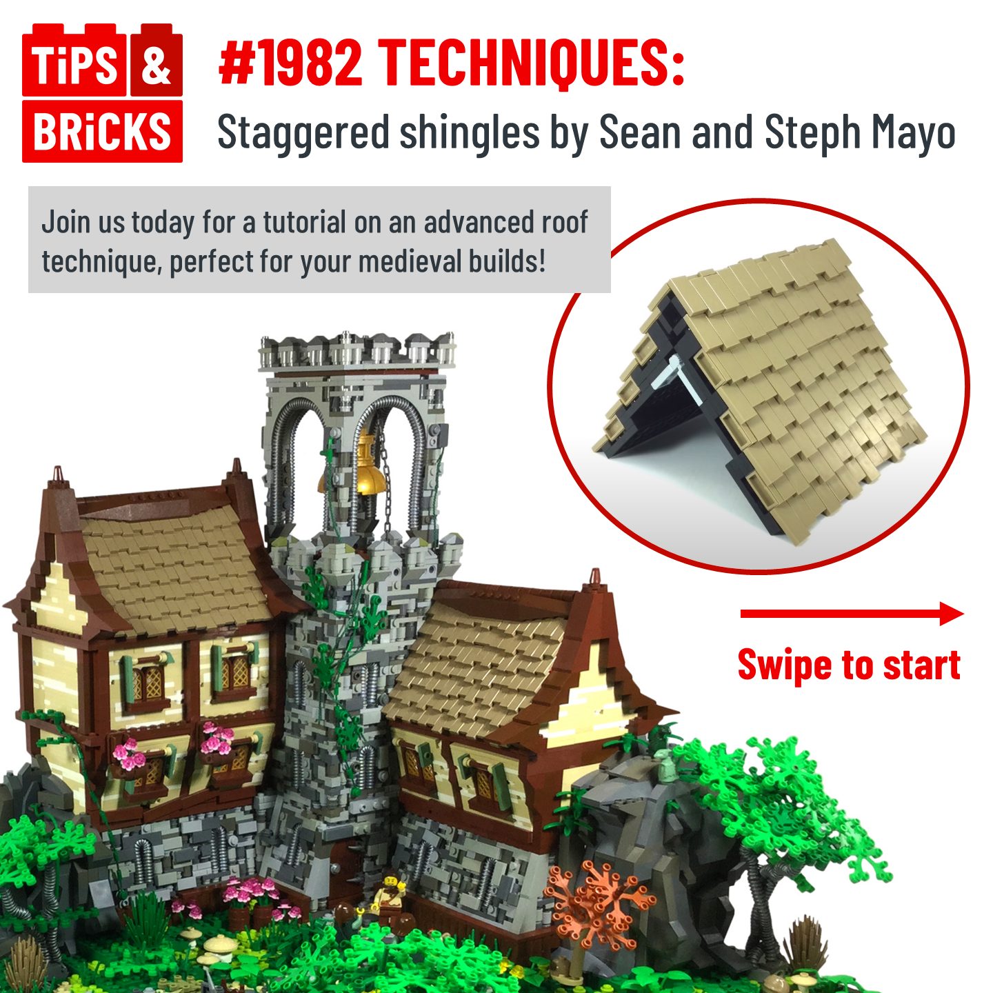 Today, learn how to build a staggered shingle roof by Sean Mayo! There are quite a few steps, but together they achieve a very random design that you can’t go wrong with! Swipe to discover, and let us know if you’ve ever used this technique or a similar one for shingle roofs!