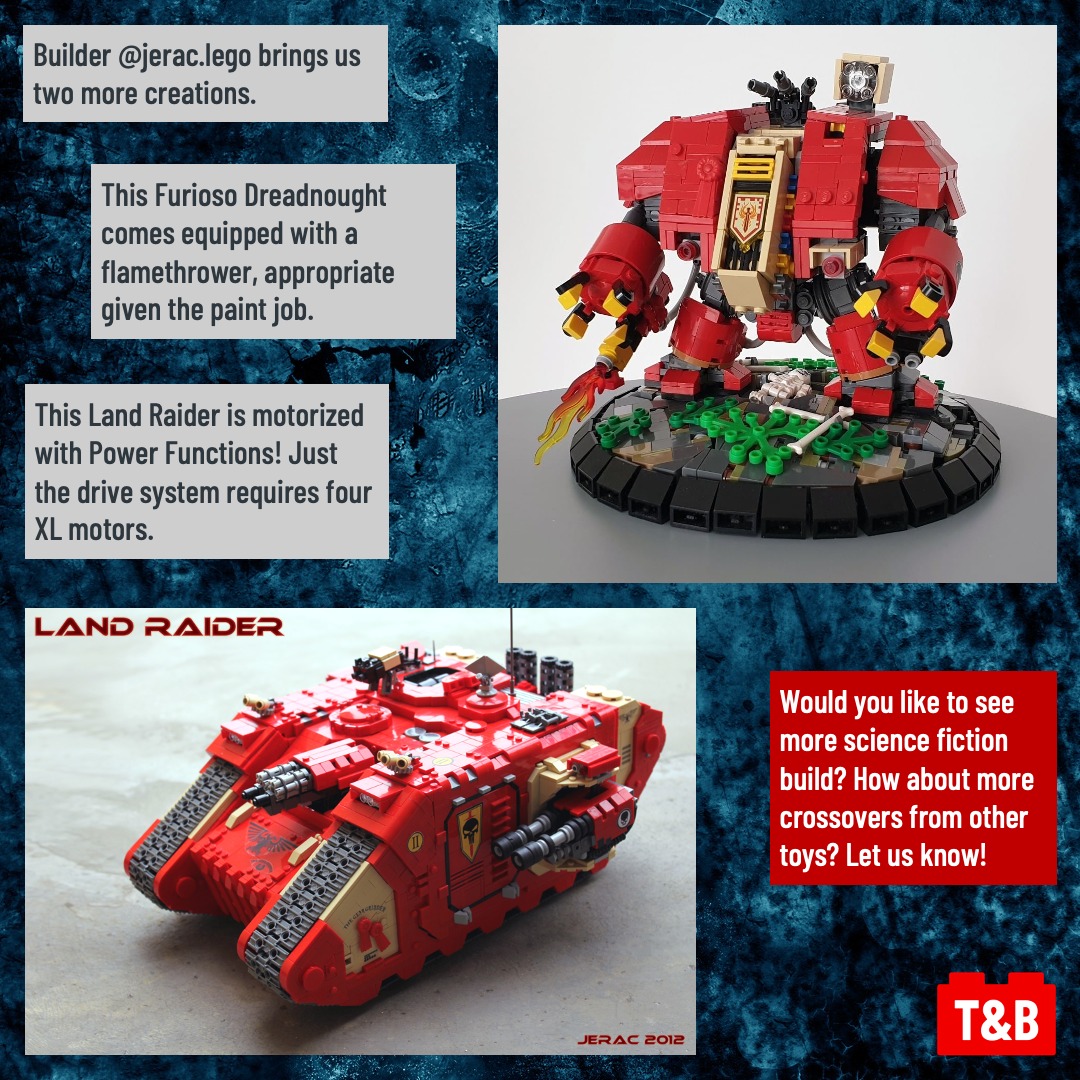 Explore the “grimdark” world of Warhammer 40k through these faithful reproductions of iconic models in LEGO form! We present MOCs from three builders, @jerac.lego and @funnystufftoys on Instagram and Gerry_Rocks on Flickr.