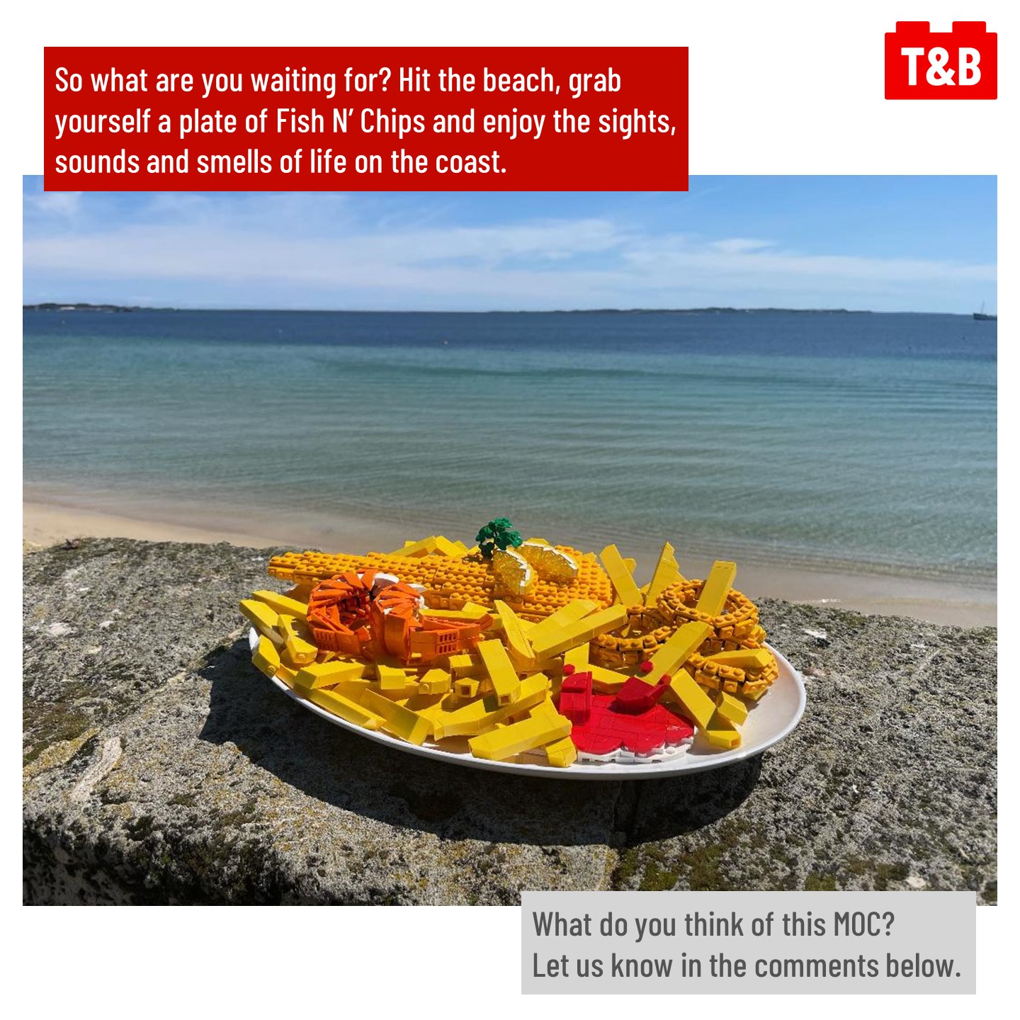 Let’s take a trip to the seaside with this week’s MOC feature! What’s better than a large portion of fish and chips with all the extras? A LEGO version of course!