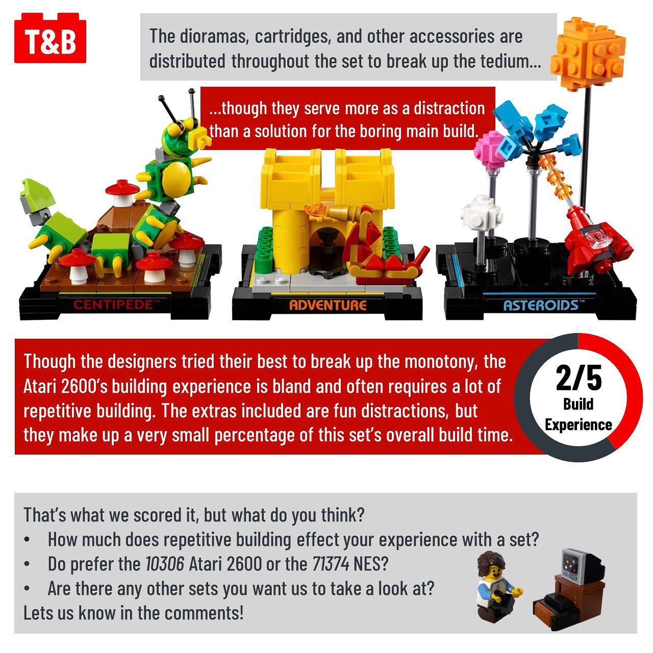 The Atari 2600 released last fall to somewhat little fanfare, but we can assure you it’s certainly worth a closer look! It may be a little overpriced and it doesn’t have the greatest building experience, but we were still able to find some details that made it a pretty interesting set!