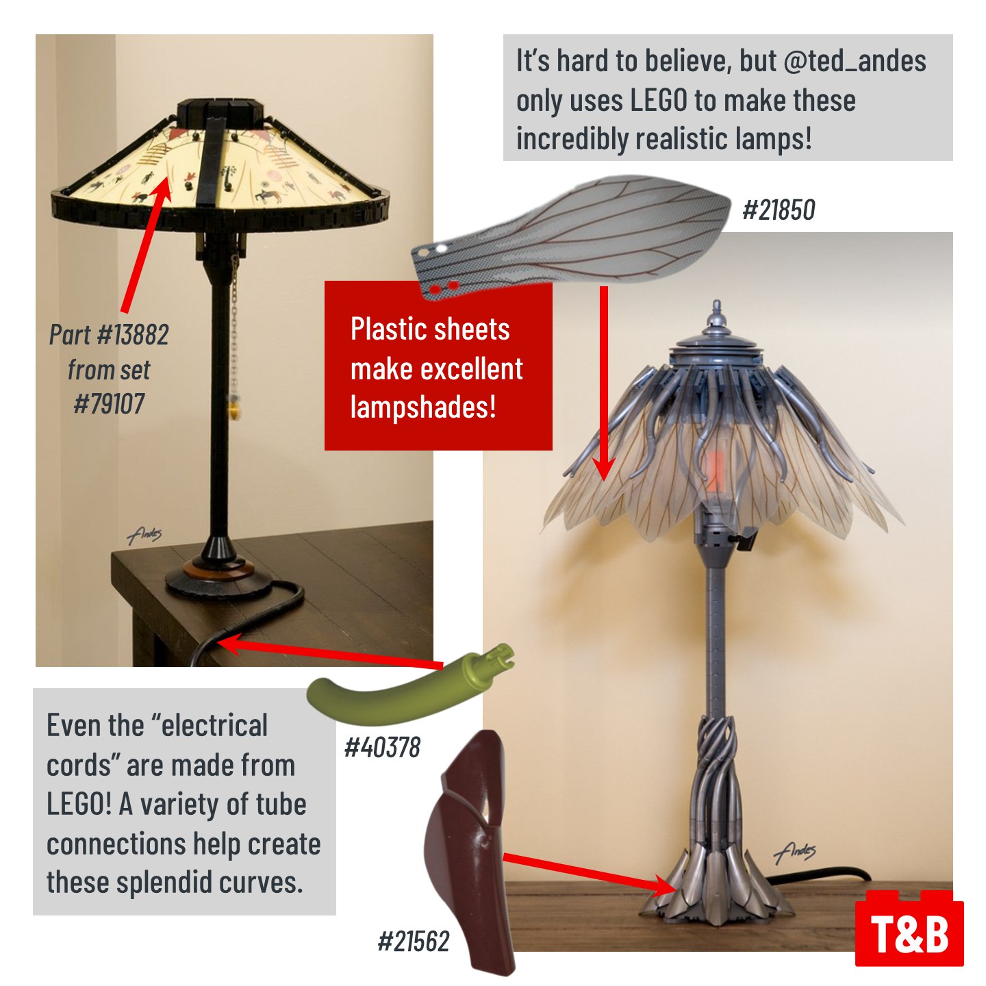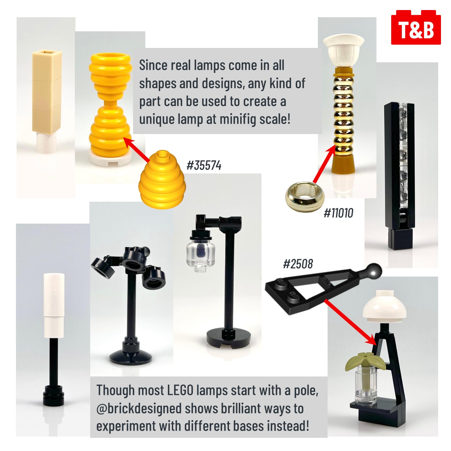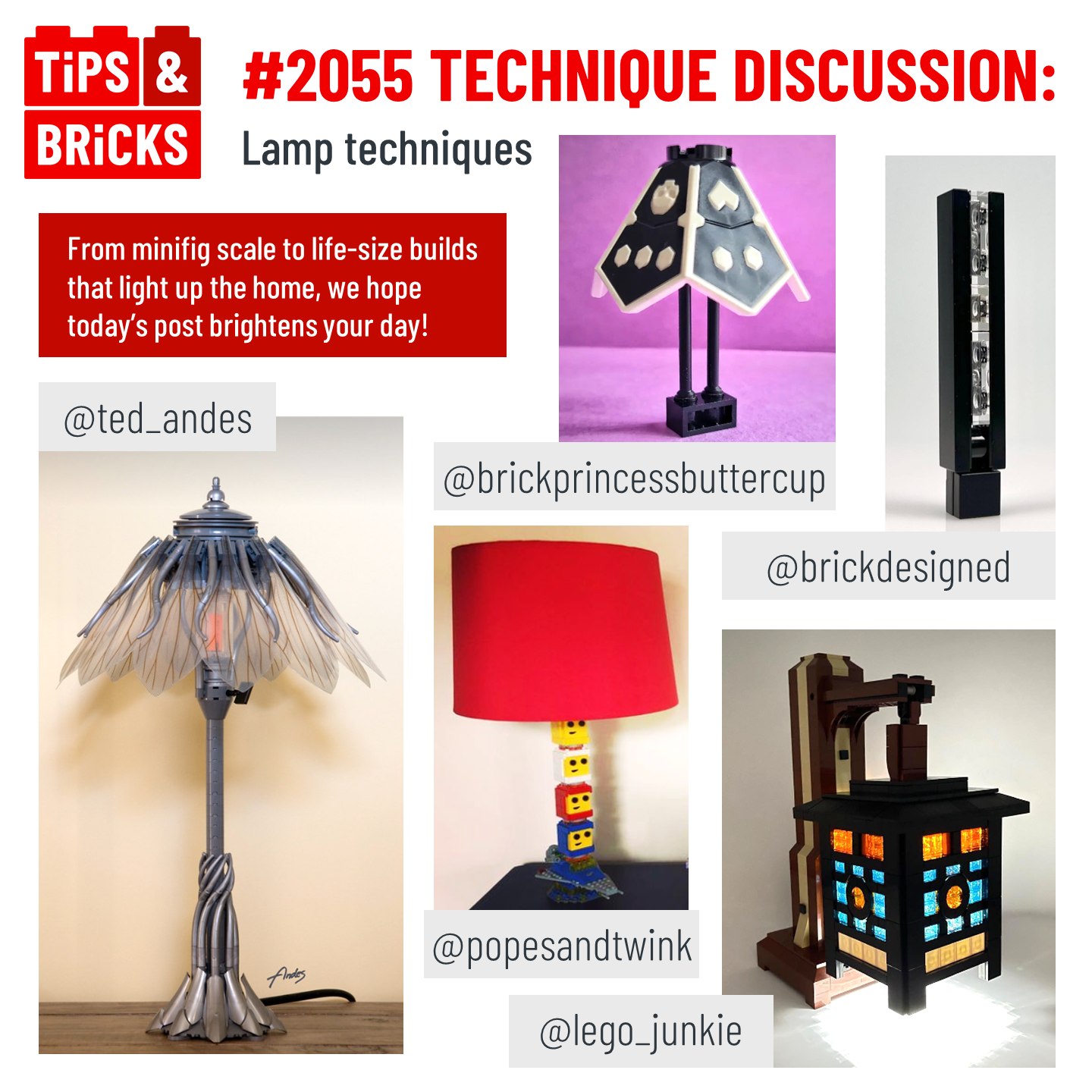 We’re lighting up the Internet with today’s technique discussion all about lamps! Whether adding one to your minifig-scale dwelling or making a statement piece in your own home, these techniques will ignite your creativity! As always, share your favorite designs, builders, and techniques in the comments.