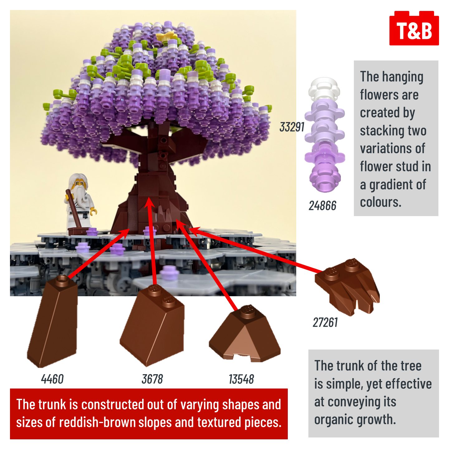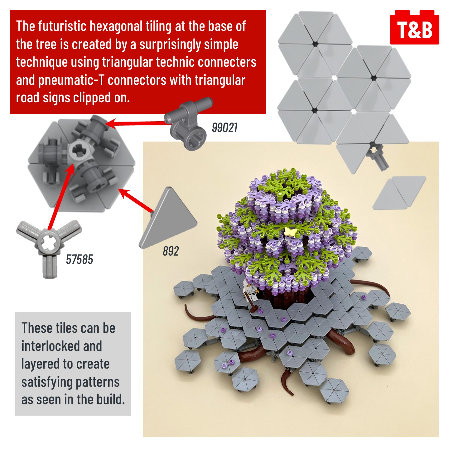 In today’s technique analysis, we take a look at the techniques involved to construct an incredibly beautiful tree build with a unique futuristic base by the talented builder @nannanz_creations . This build was a small part of the enormous New Hashima collab that was displayed at Brickworld 2023 and had over 80 contributors to the build!