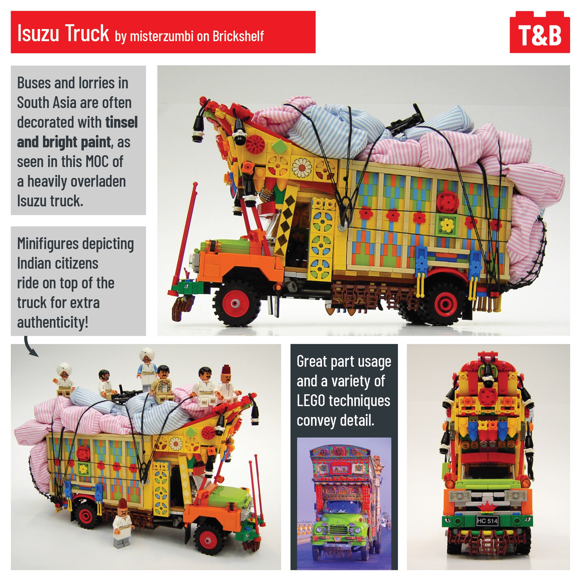 Today we discover some MOCs inspired by the culture of the Republic of India. From famous architecture to the colourful Isuzu Truck, we’d love to see more sets based on this vibrant culture. While LEGO has made some great sets that represent India, there’s one standout bad example: we’re looking at you Temple of Doom…