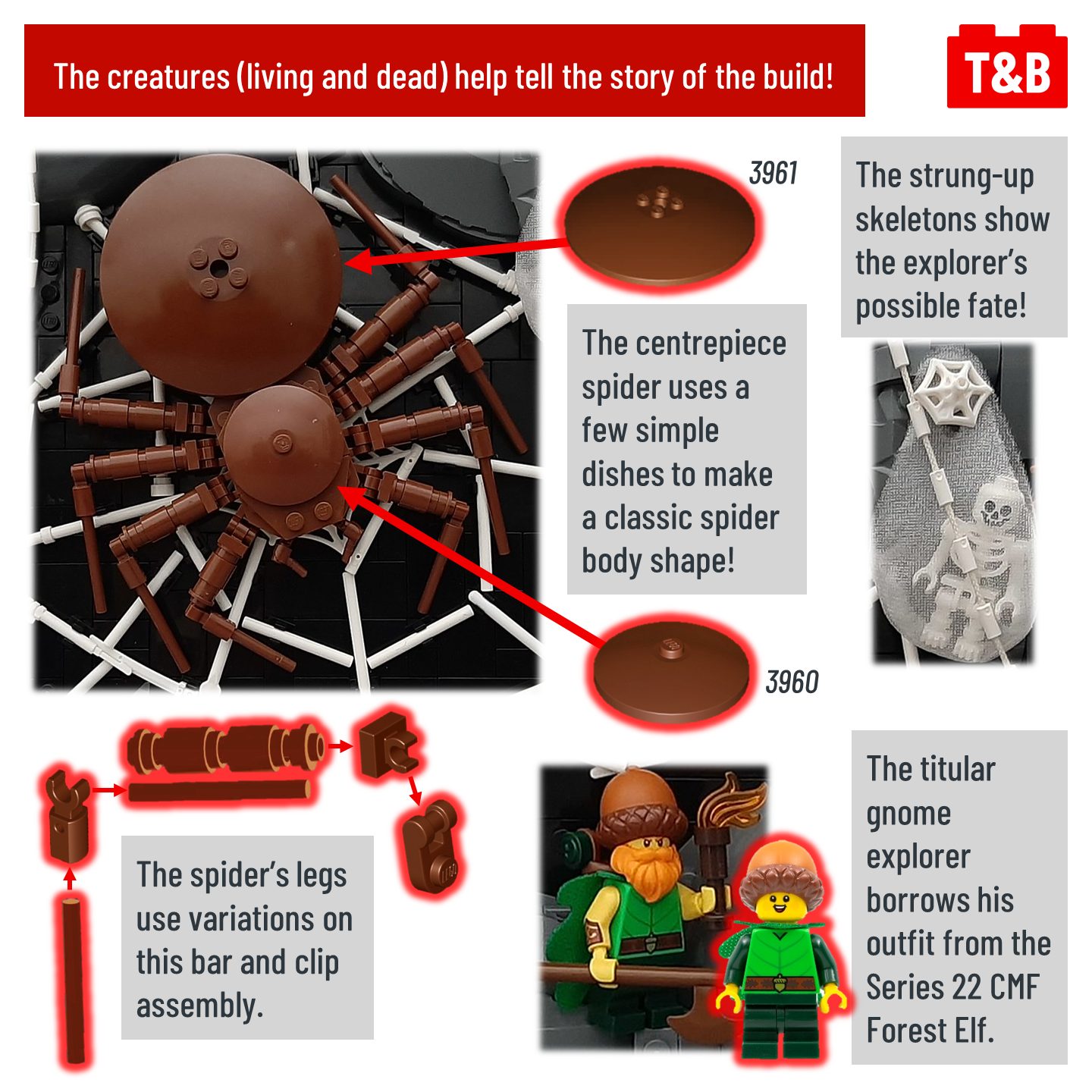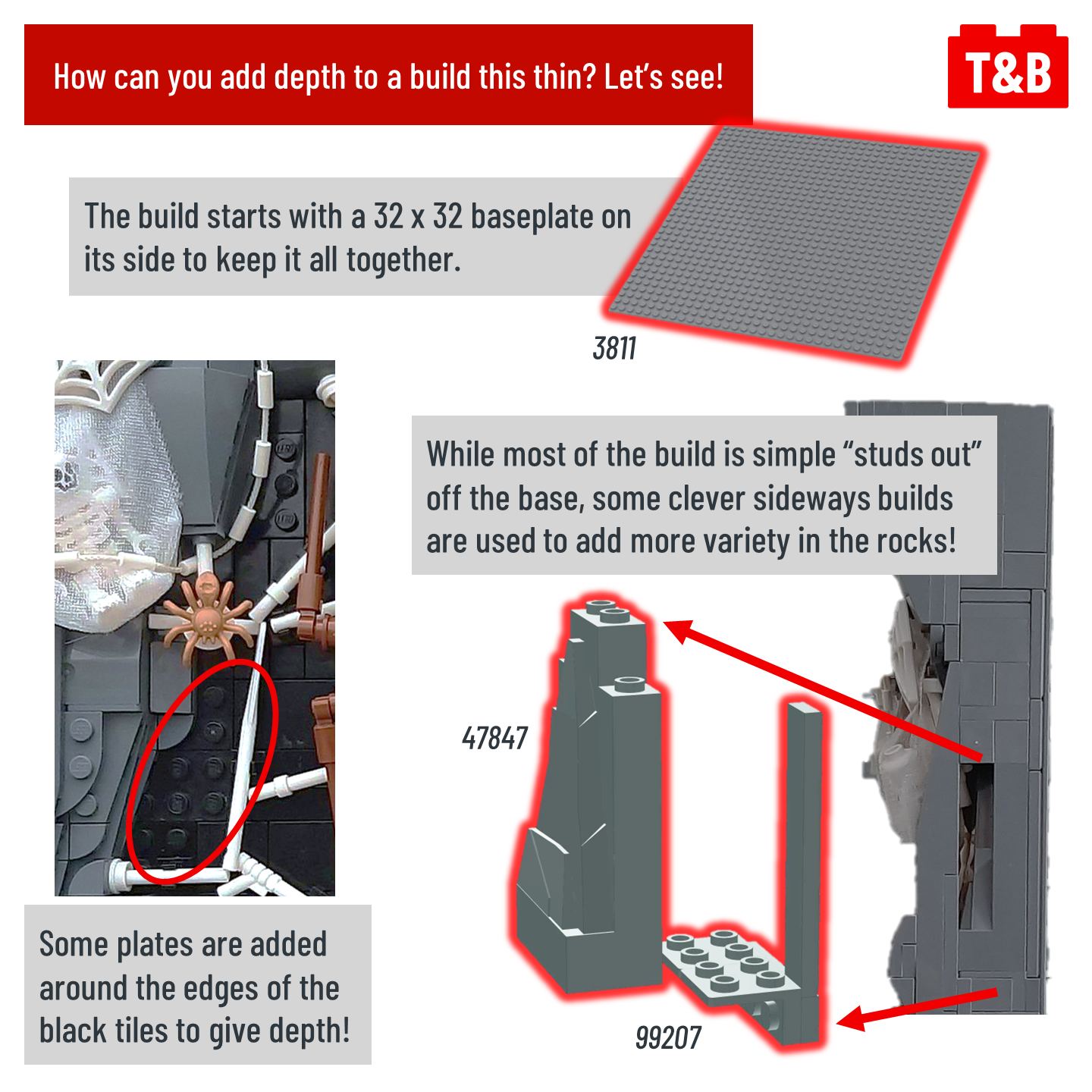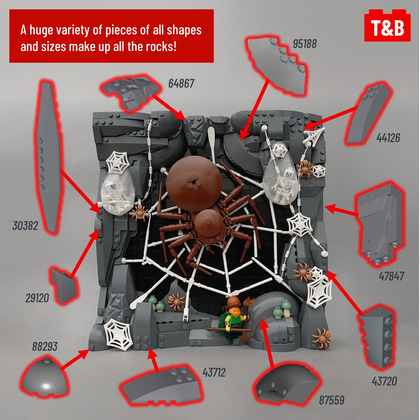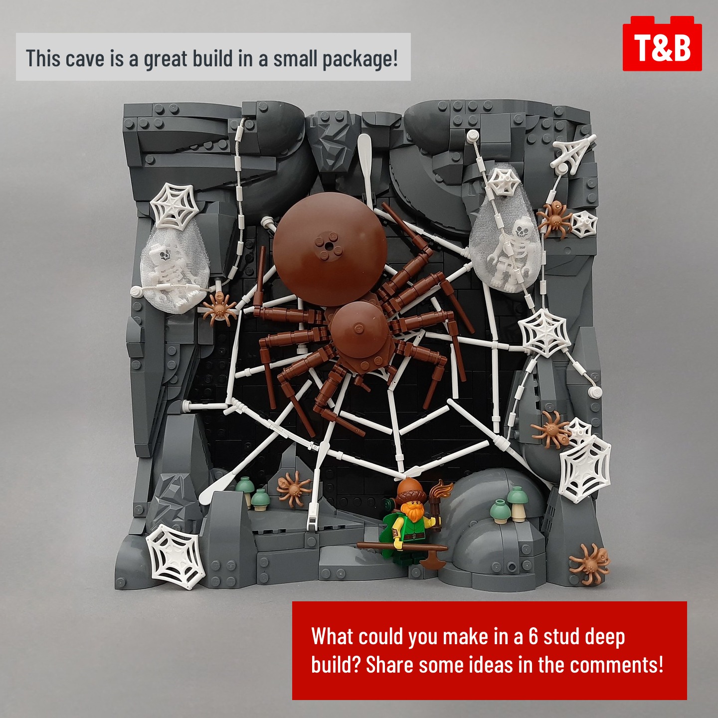 A build only 6 studs deep? Must be pretty basic right – wrong! This entry into the Summer Joust by @jaskierthebard is packed with character, great part use and clever techniques! From natural rockwork to the spider’s web, there’s so much to enjoy in this MOC.