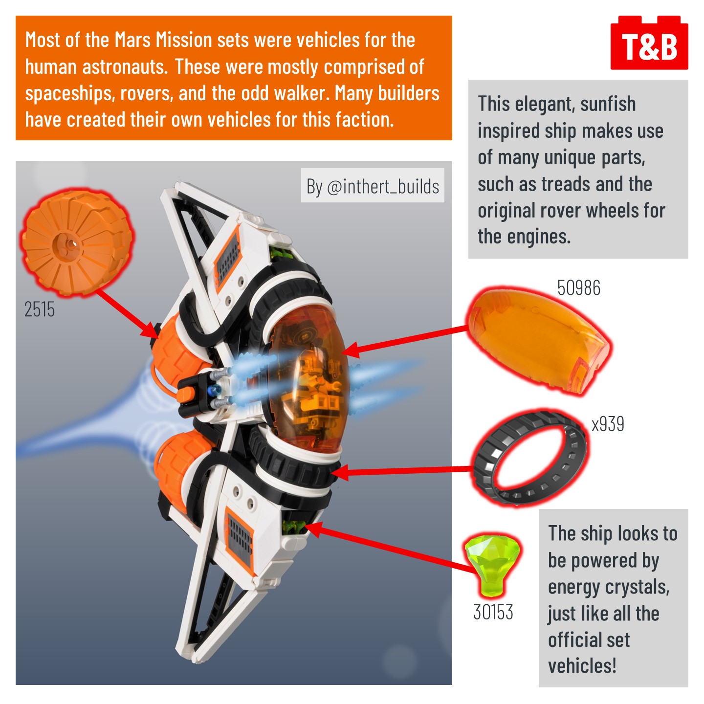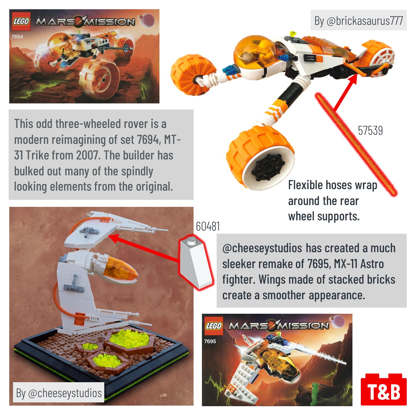 Let’s revisit a much-loved theme from 2007, Mars Mission! It’s iconic white and orange colour scheme of the human faction is commonly used for many spaceship and other sci-fi vehicle MOCs among the community. Today we pay tribute to the short-lived theme by showcasing MOCs revisiting existing sets, new vehicle concepts, and reimagings of the minifigures!