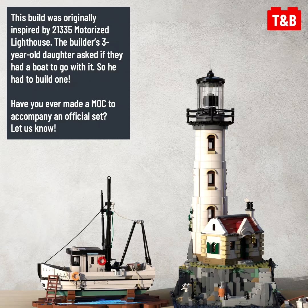 This charming and innovative build by Alex Storozhuk (“Adwind”) has 10,000 votes on Lego Ideas as of October 2023. This build started as an accompaniment to 21335 Motorized Lighthouse.