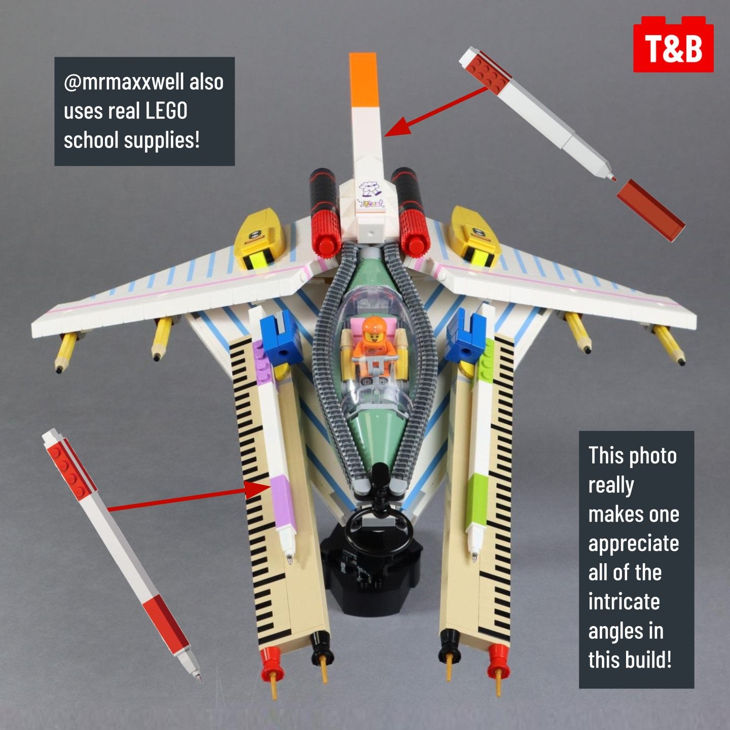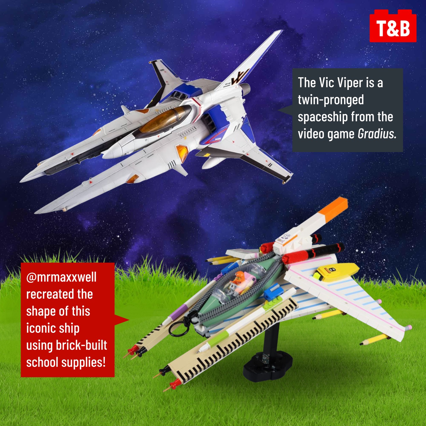 At the beginning of the year we featured the Vic Veparator by @lego.joey, and today we bring you our final MOC of 2023, also inspired by the Vic Viper! The BIC Viper by @mrmaxxwell reimagines the ship’s design using school supplies, all built from official LEGO parts. The ship is essentially made up of mini builds that all join together for one epic ship!