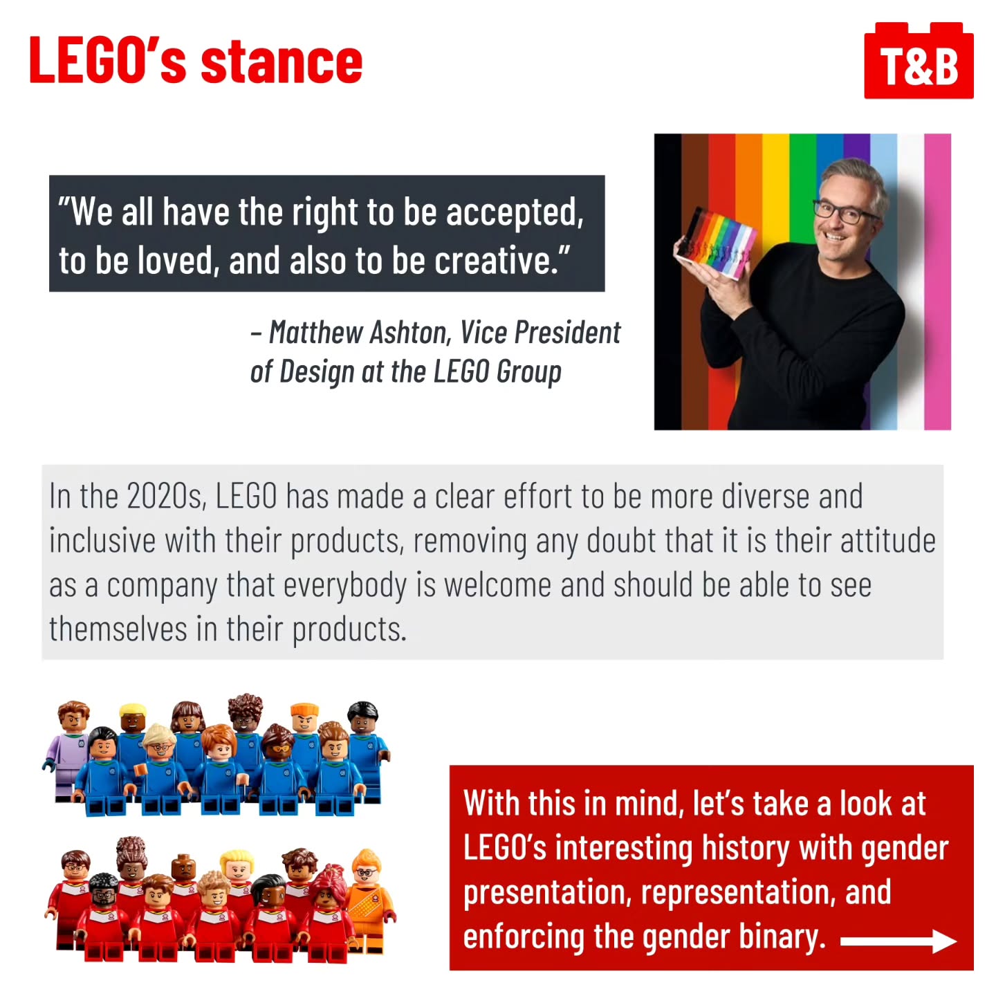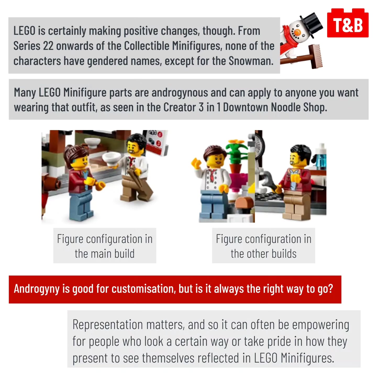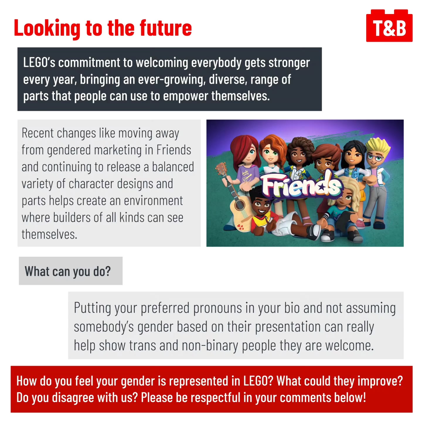 In today’s post we discuss how LEGO has depicted gender and the gender binary, and highlight recent progress that has been made in making everybody feel welcome with their products. How do you feel your identity is represented in LEGO? Are there areas they need to improve upon? Comment below!