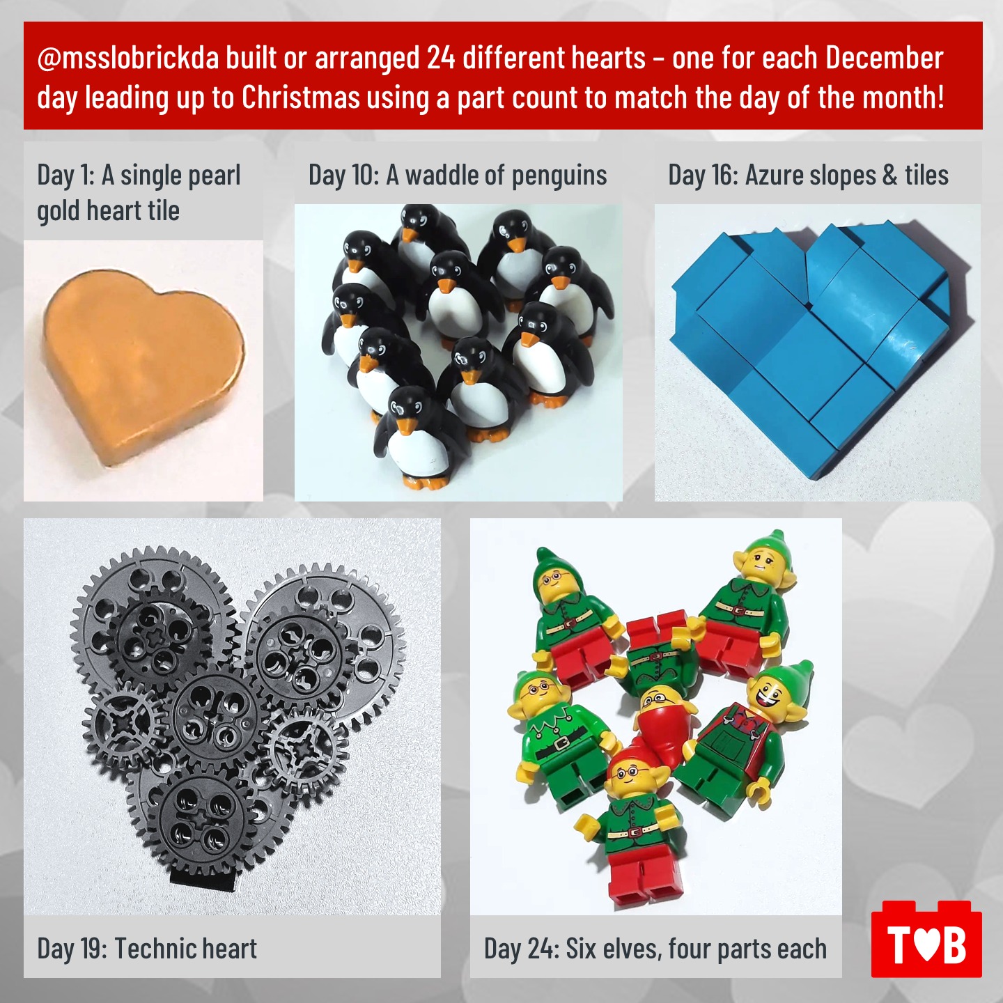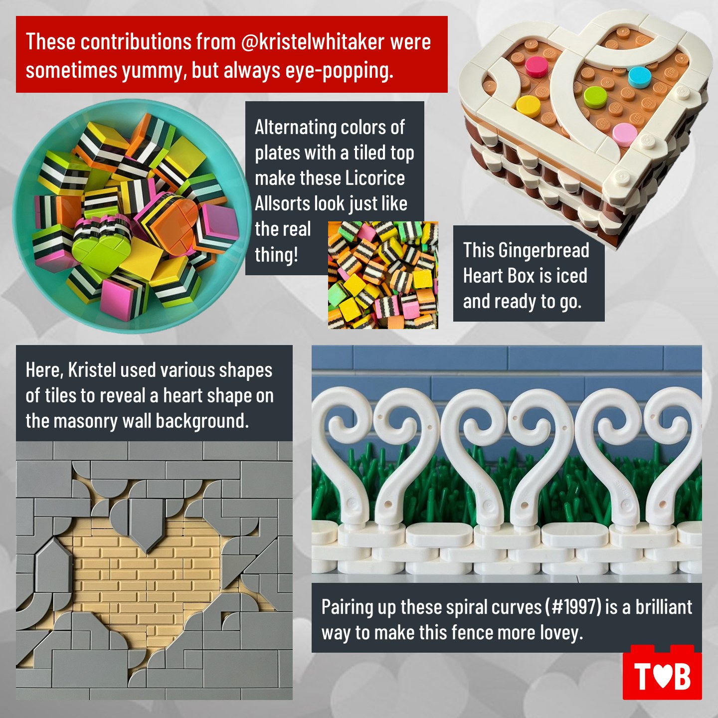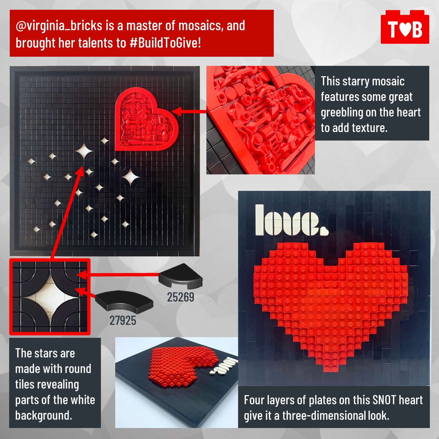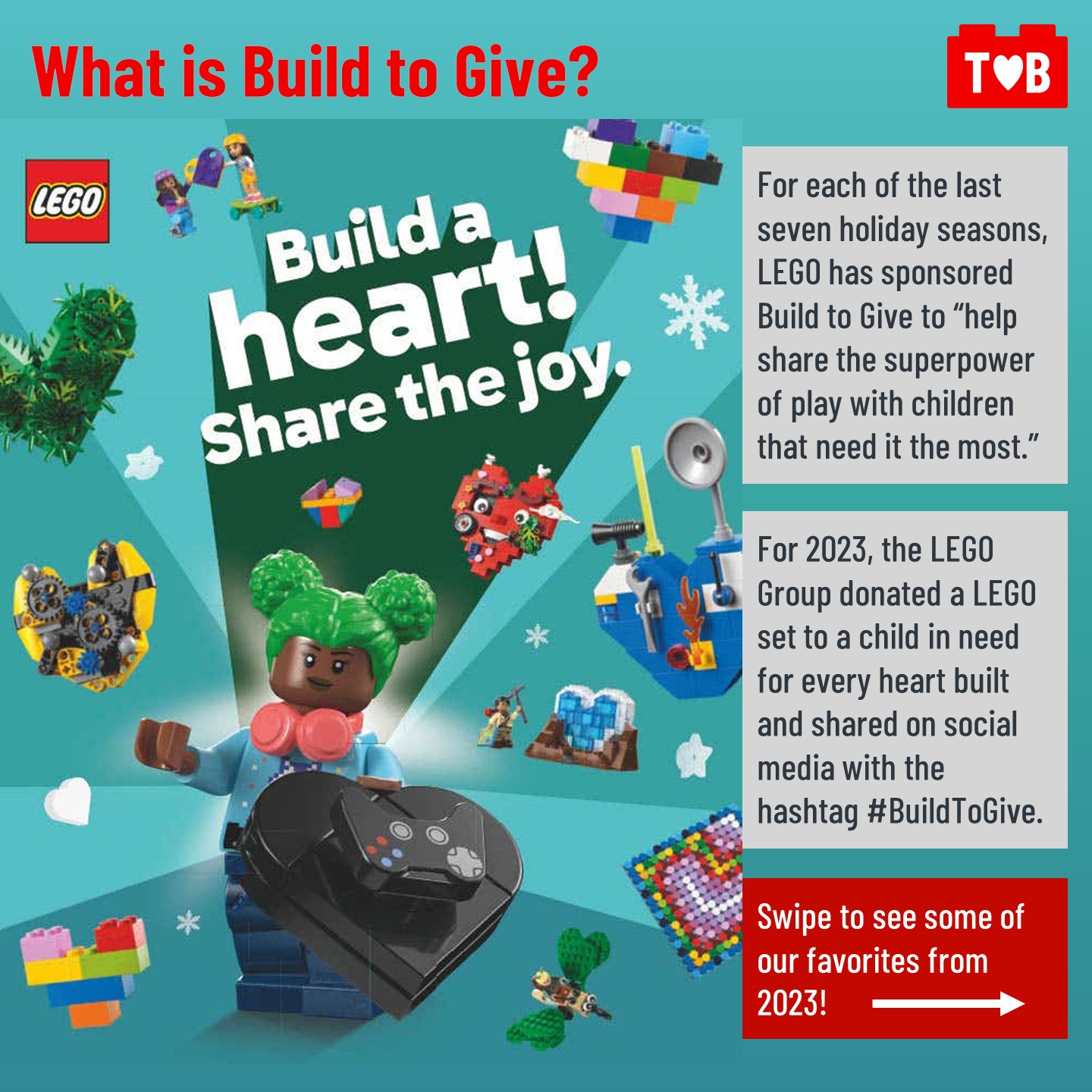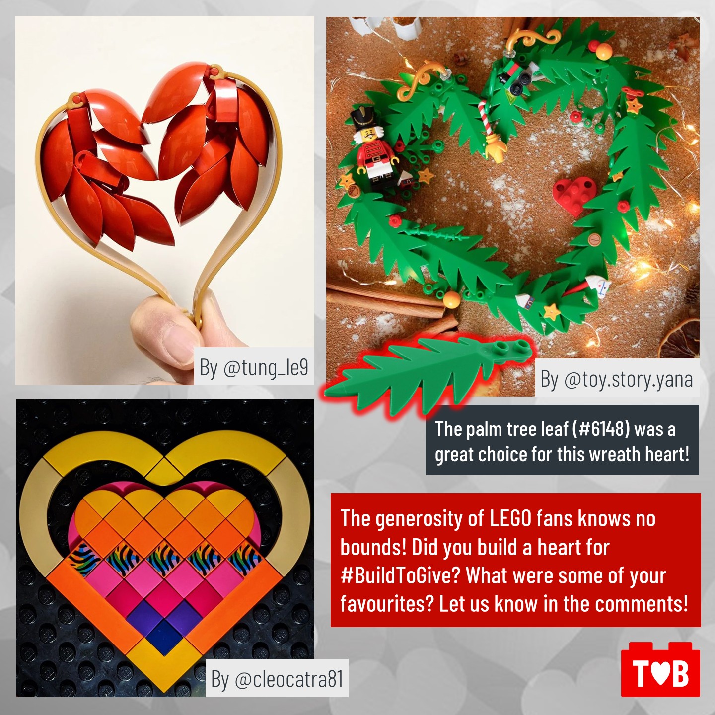 For each of the past seven years LEGO has invited fans, both young and young at heart, to make builds of a certain theme around the holidays as part of their #BuildToGive campaign. This November and December, the theme was hearts.