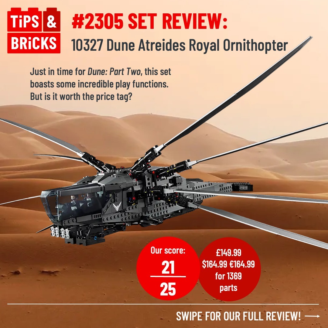 The flapping flying machine described in the novel was made iconic by the filmmakers and is now immortalized in a one-of-a-kind LEGO set, hinted by designers to be the only set they will make based on the Dune series.