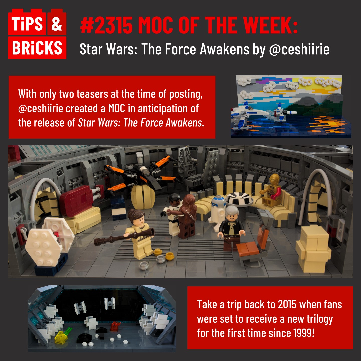 A long time ago, in a galaxy far, far away (also known as 2015), the world was set to receive a new Star Wars trilogy for the first time since 1999. With just two teasers at the time, @ceshiirie created a MOC highlighting the various scenes shown in the format of a hypothetical LEGO Star Wars game.