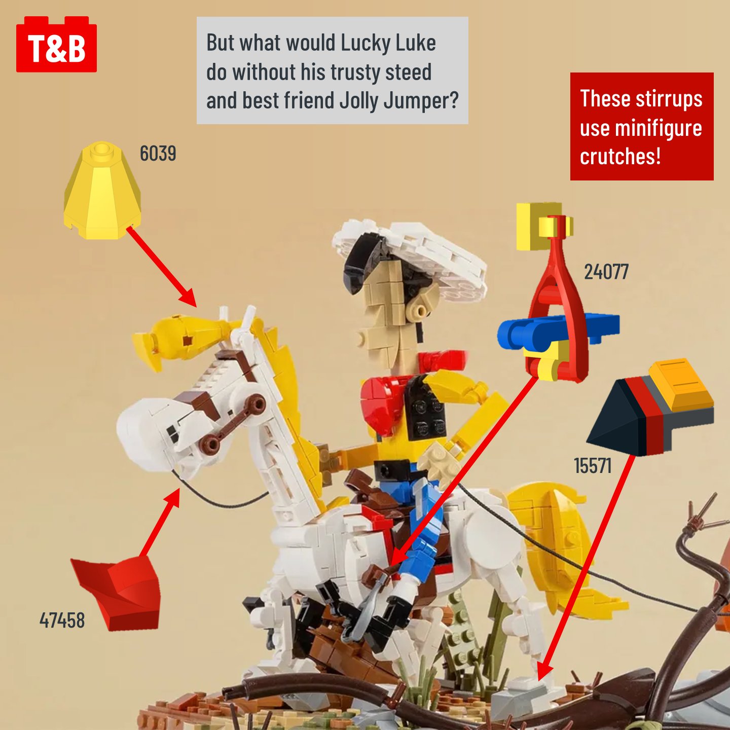 Oh no! Rataplan let the Daltons once again escape. But no worry’s Lucky Luke and Jolly Jumper already caught the bandits. This amazing build features the aftermath of an epic adventure and certainly lives up to the scale of the gunslinger, who shoots faster than his own shadow.