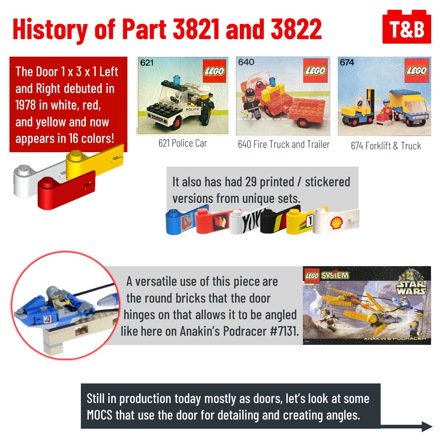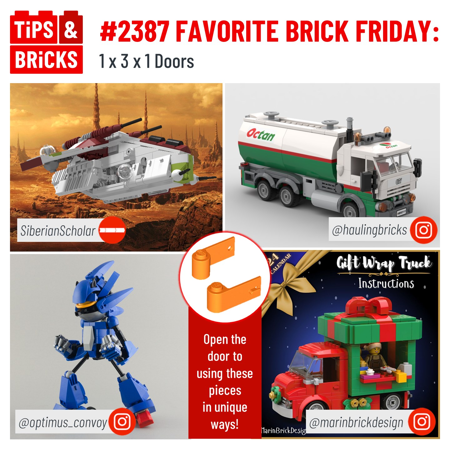 Open the door to using these pieces in unique ways! This piece from 1978 is still in production today, so let’s look at some MOCS that use the door for detailing and creating angles.