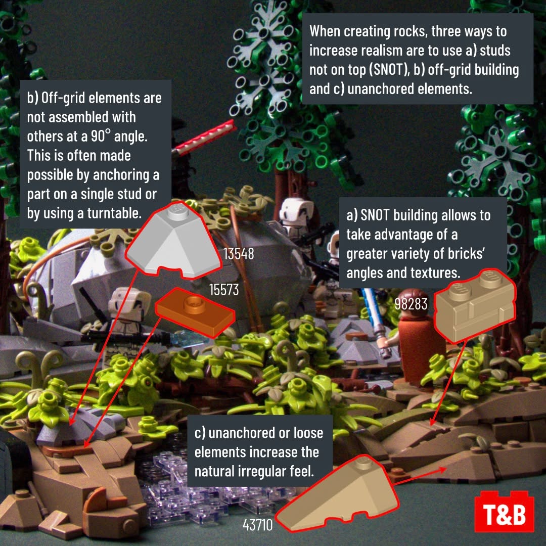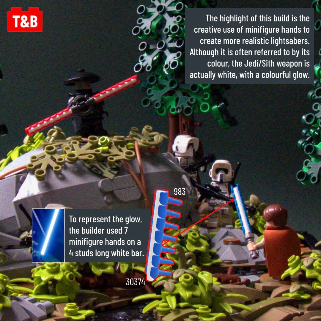 These include tree building techniques with realistic lighting effects in the canopy, multiple rock building techniques and a highly creative take on the lightsabers.