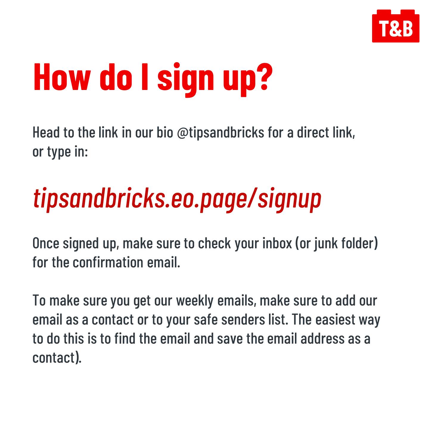 To sign up, head to the link in our bio @tipsandbricks for a direct link, or type in: