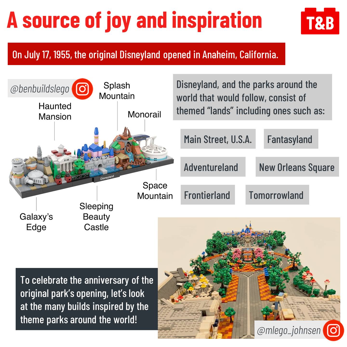 To all who come to this happy place: welcome! On July 17, 1955, Disneyland opened in Anaheim, California. To celebrate the anniversary of the original park’s opening, let’s look at the many builds inspired by the theme parks around the world!
