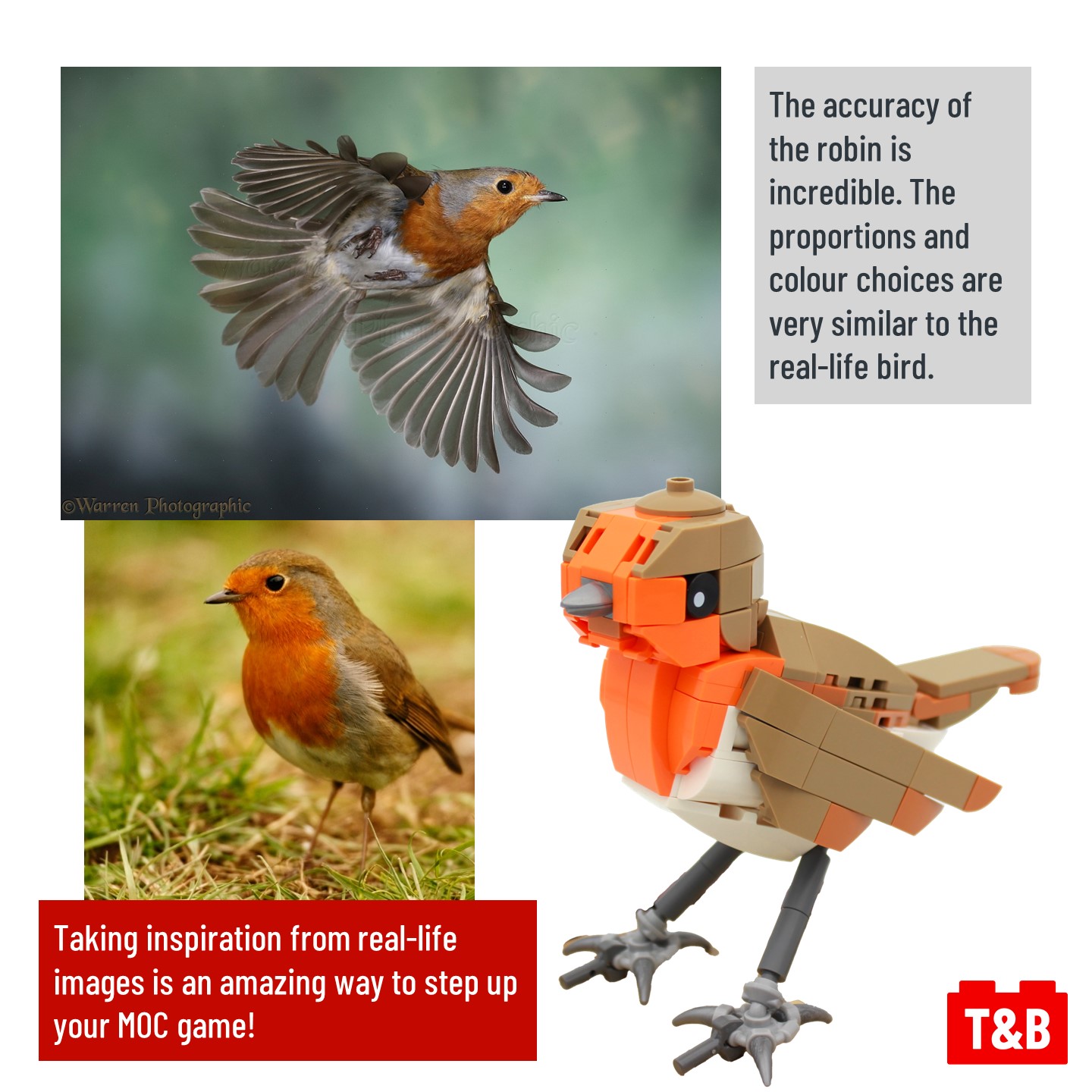Today we are going to explore this adorable Robin build, by Victor on Flickr! Let’s take a look at the different parts of the build and how the builders brings this little build to life!