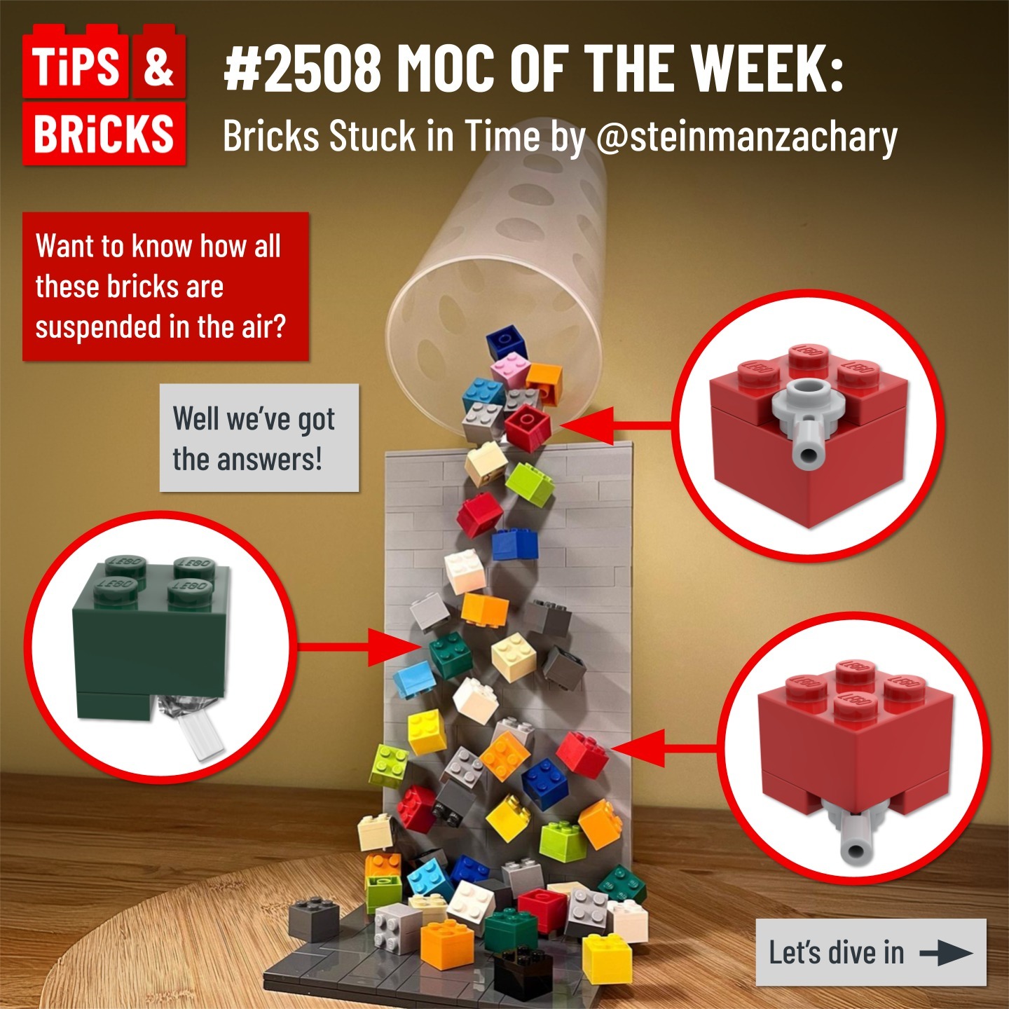 You might be wondering, ‘Why are we calling a random pile of bricks our MOC of the week?’ However, if you look closely, you’ll notice some great techniques at play! Let’s dive into the details and explore the innovative methods used in this design by @steinmanzachary.