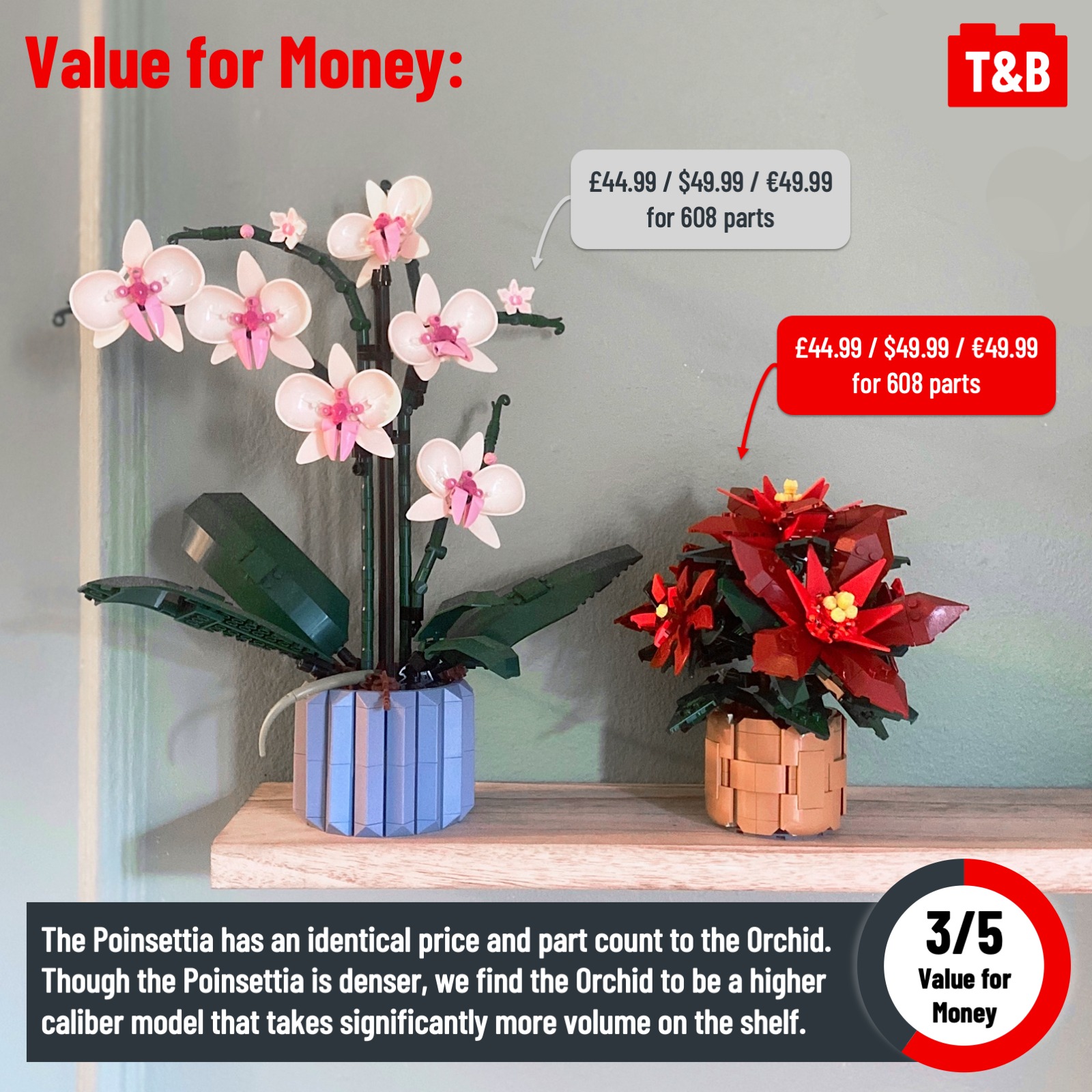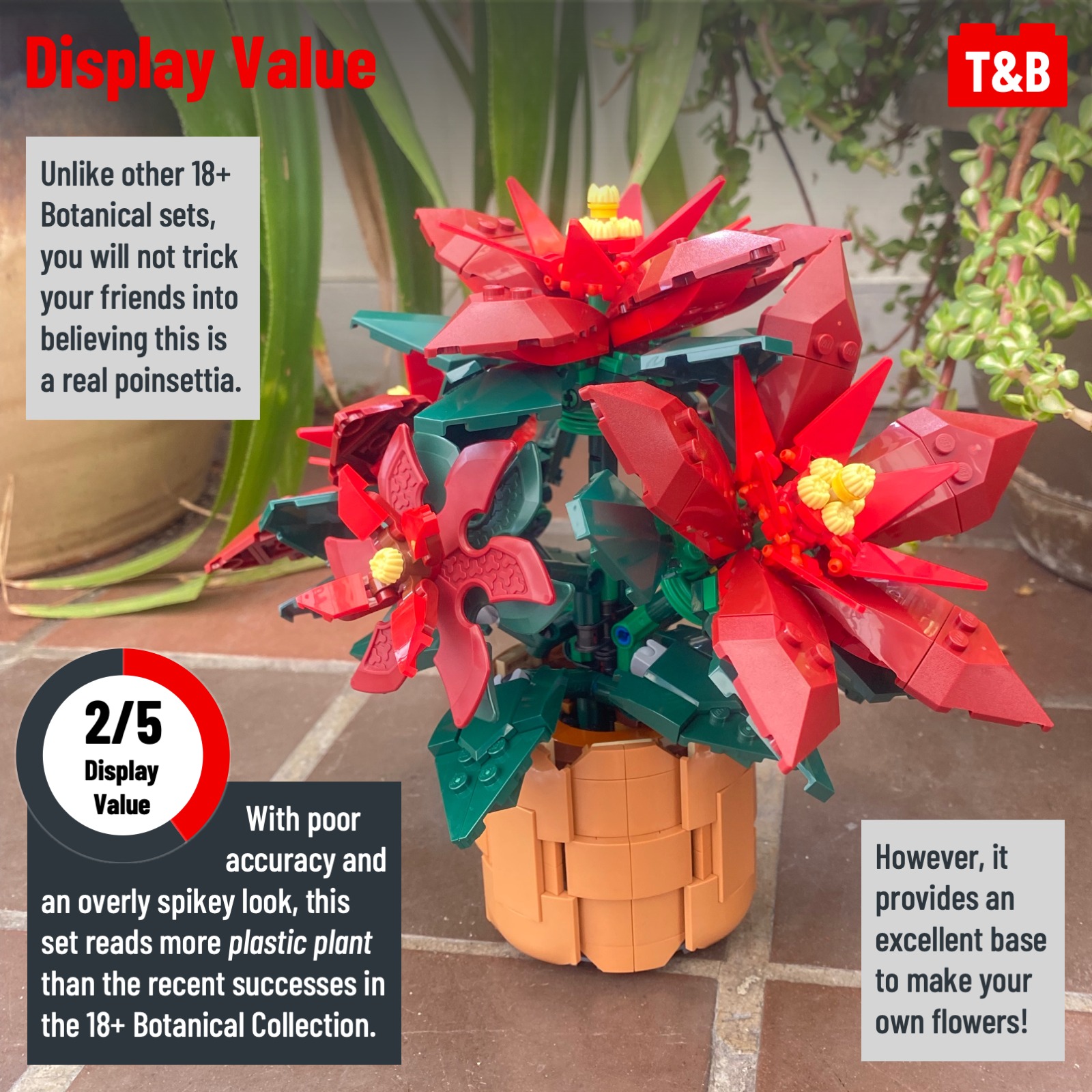The holidays have come early with the release of a LEGO Poinsettia and Wreath this October! First up for review is the Poinsettia, and we are sad to announce our disappointment. When comparing our criteria alongside the incredible Botanical releases of the past, the Poinsettia does not score as high. But if you are a fan of this flower, we still recommend the purchase of this set – it is good, just the Botanical Collection as a whole sets such a magnificent standard!