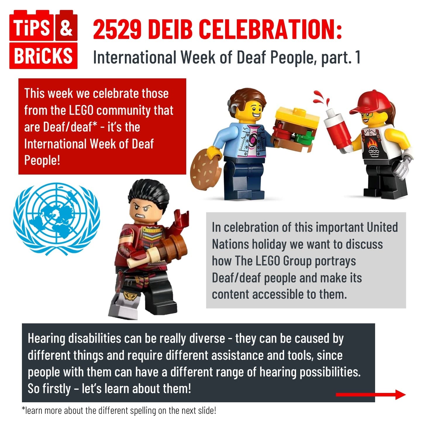 Today we celebrate the International Day of Deaf People! It is the final day of the International Week of Deaf People, which is celebrated every year in the last whole week of September. We want to use this opportunity to learn more about Deaf/deaf and Hard of Hearing community and to see how The LEGO Group accommodates their creativity and different needs.