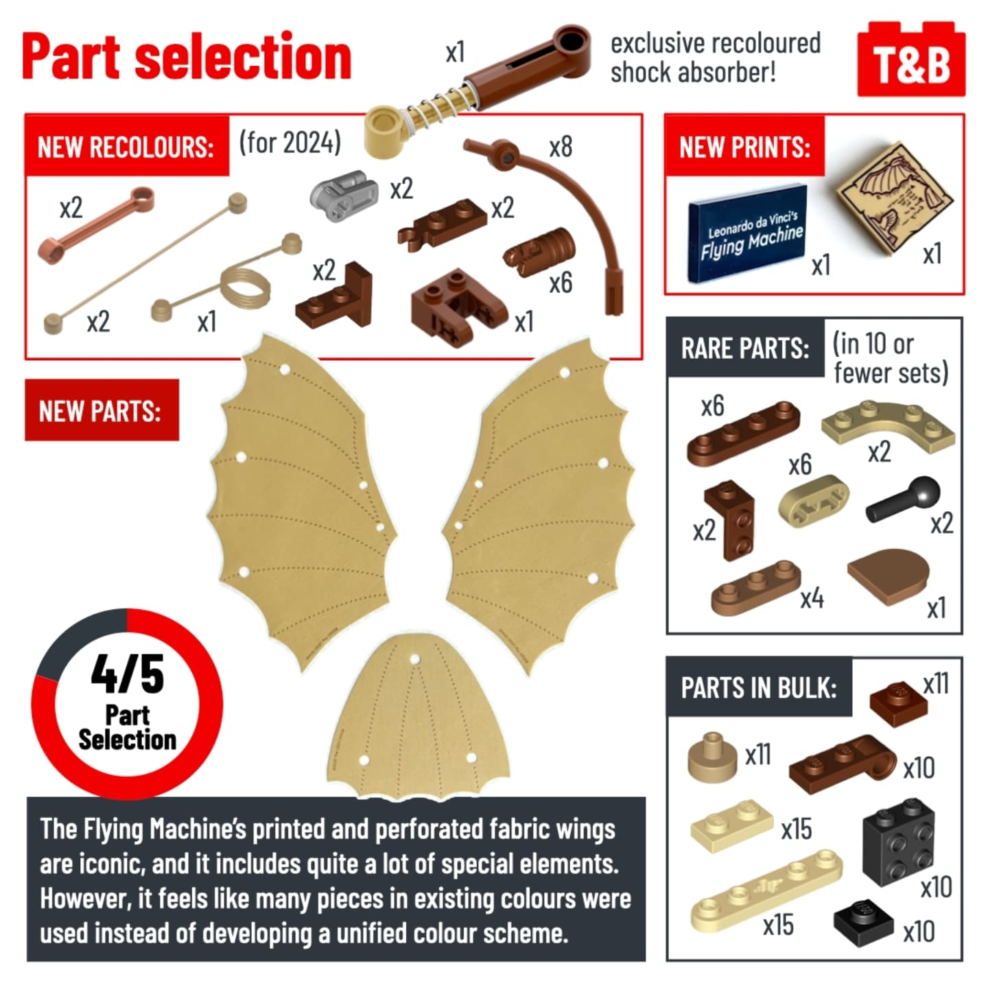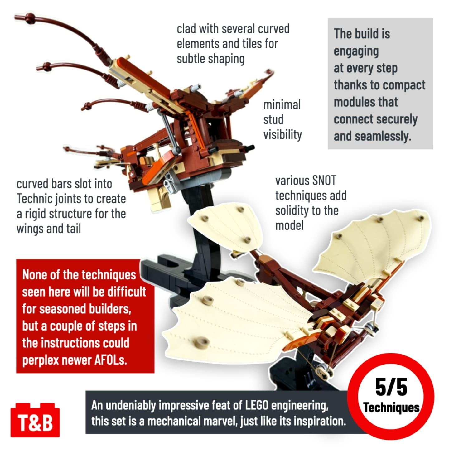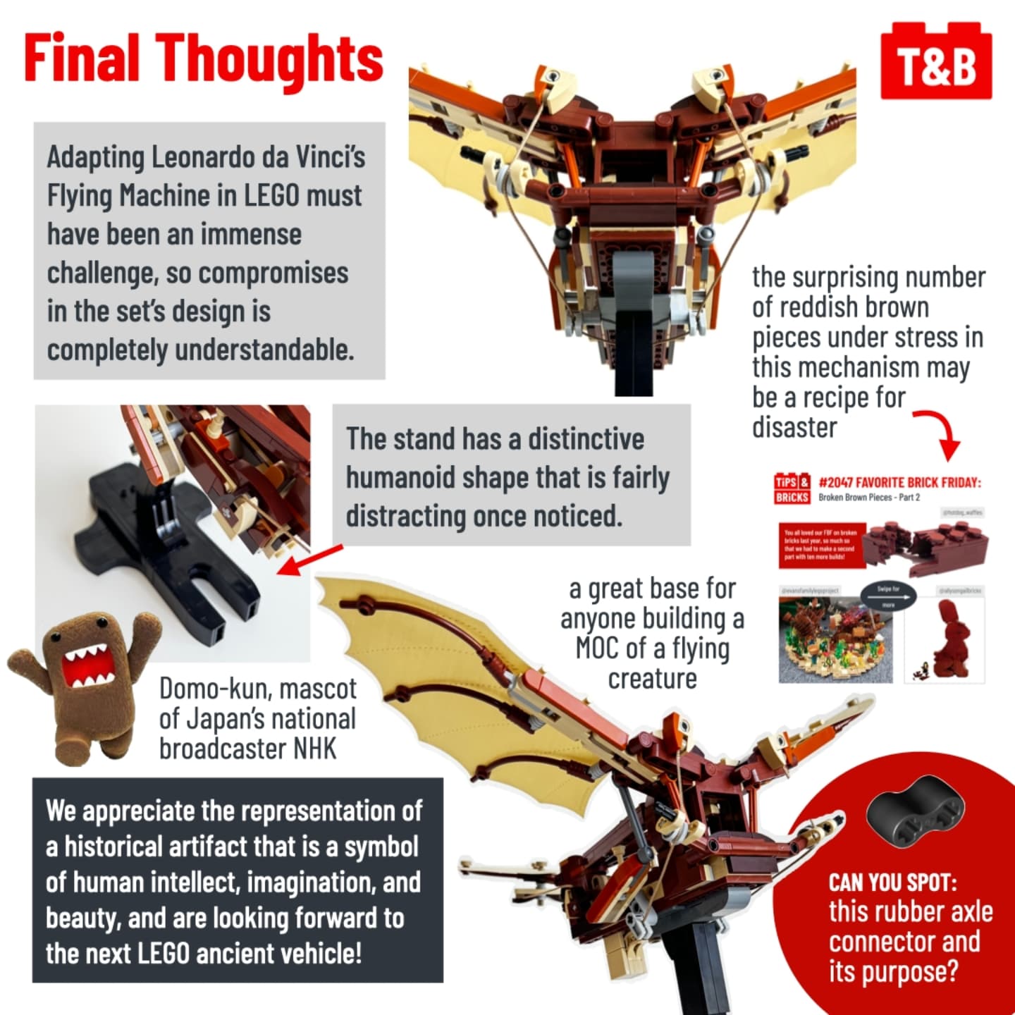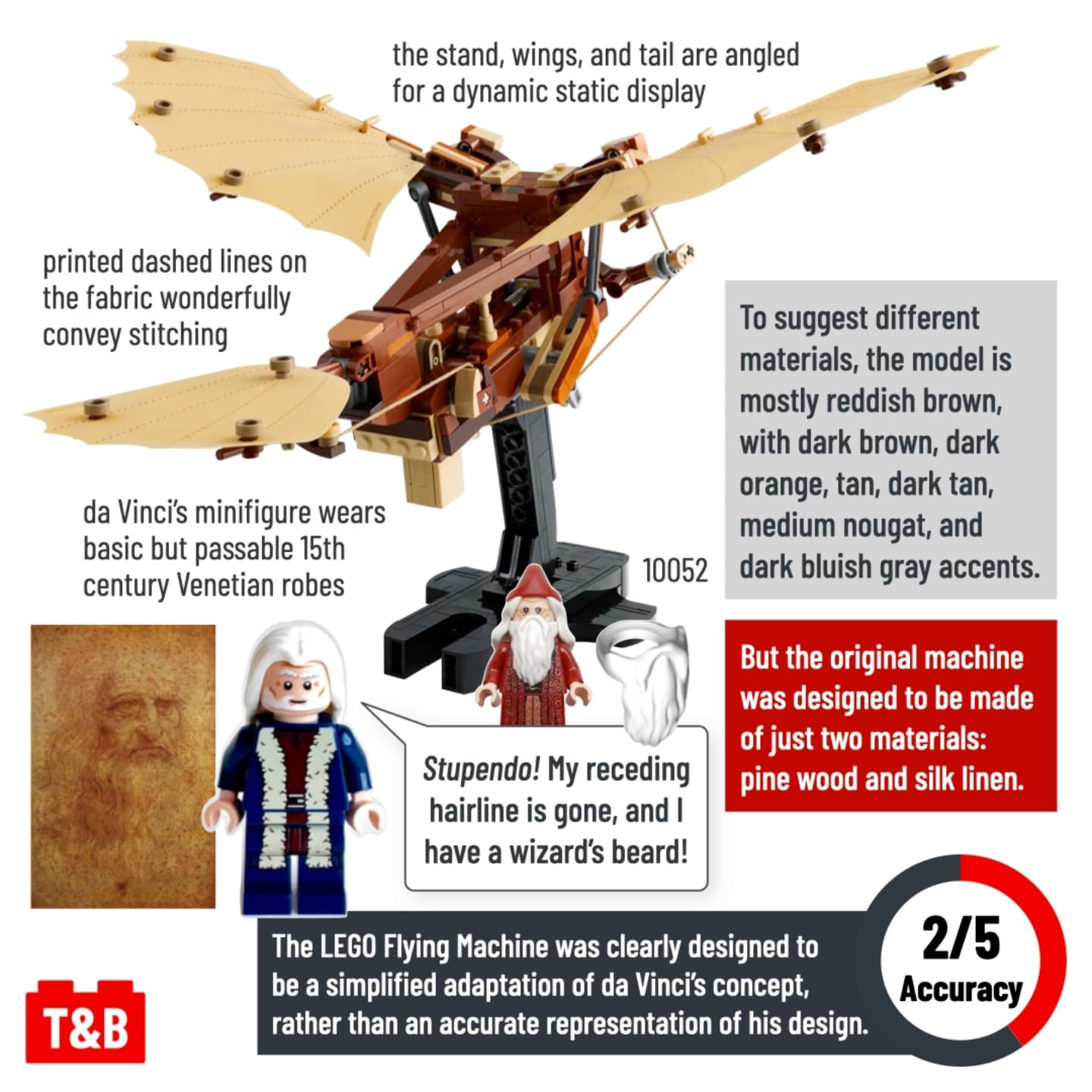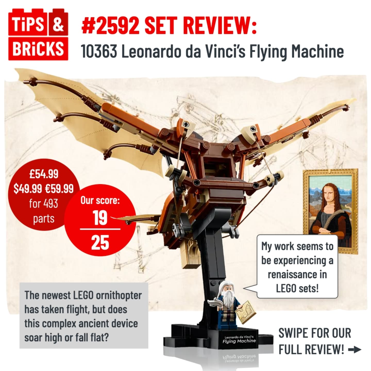 This first-of-a-kind ancient vehicle from LEGO features astonishing functionality and part selection for a compact model. But do its clever mechanisms make up for its rough appearance? And what’s the deal with the shape of its stand? Read on for our full review of Leonardo da Vinci’s Flying Machine!