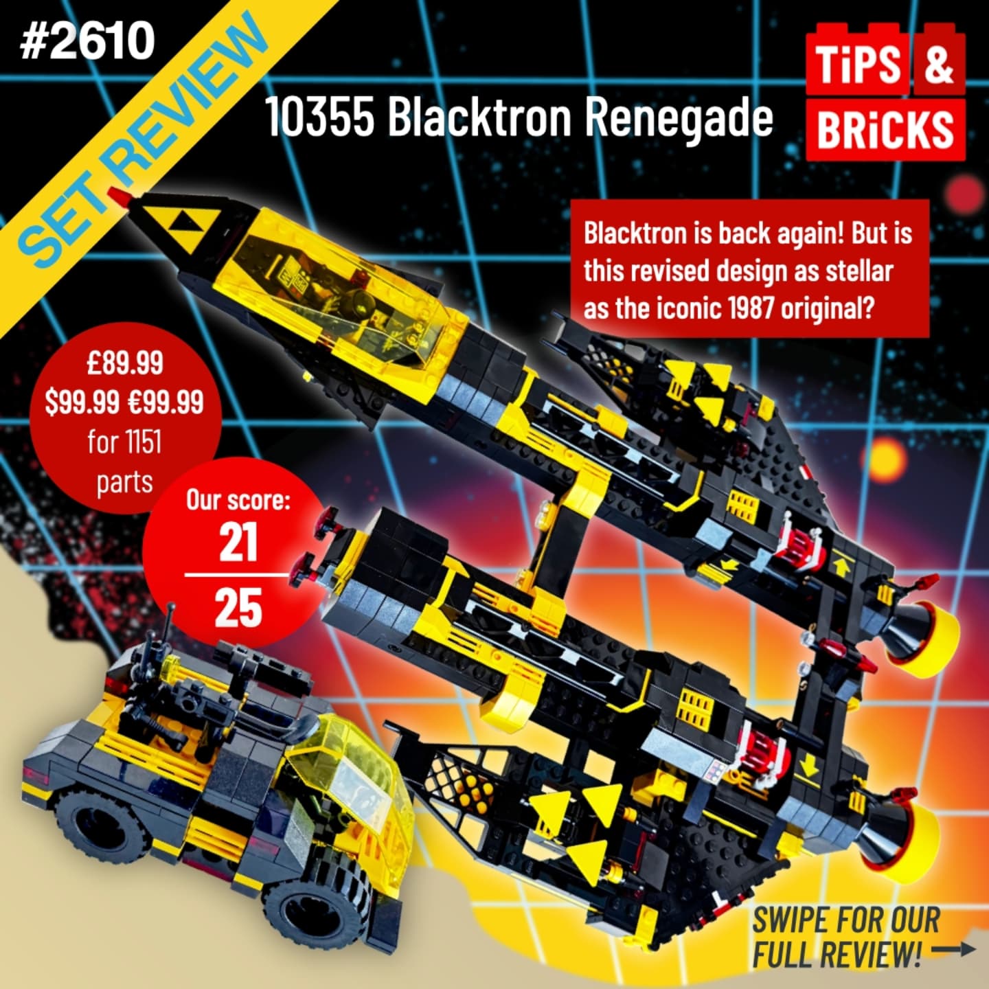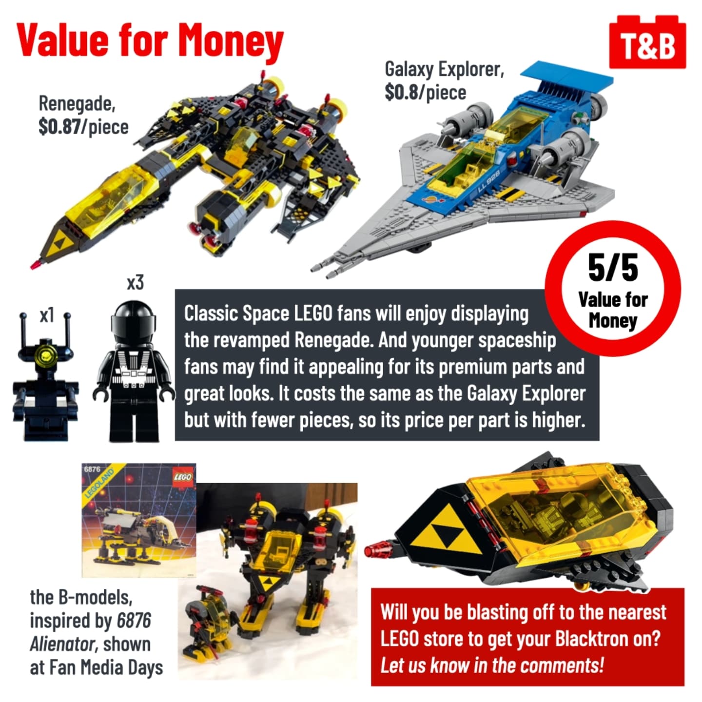This classic LEGO spacecraft has been reimagined for a new generation of Blacktron! The 1987 original was beloved not only for its unique color scheme, parts, and minifigures, but the many play options afforded by its modular design. Is the new 18+ version as unbearably cool and incredibly fun?