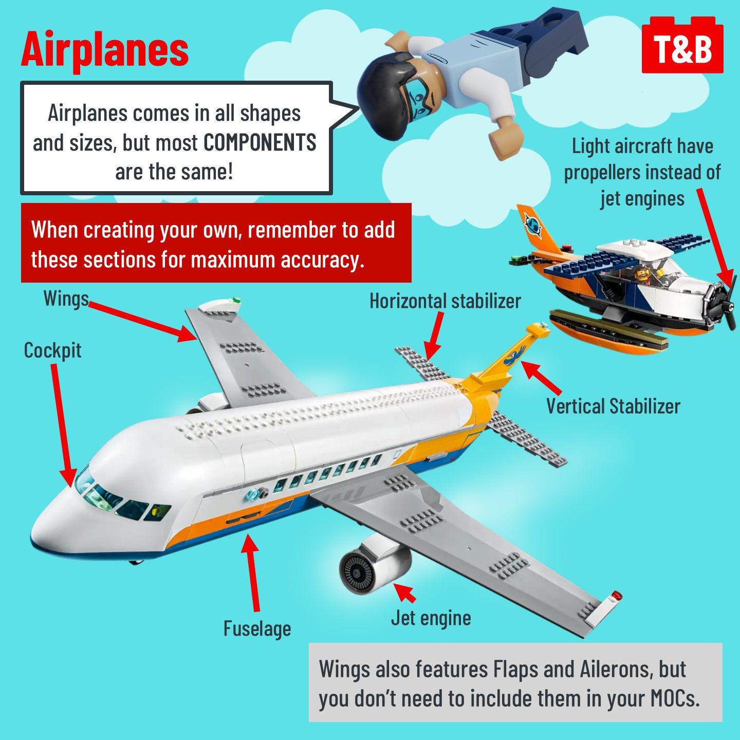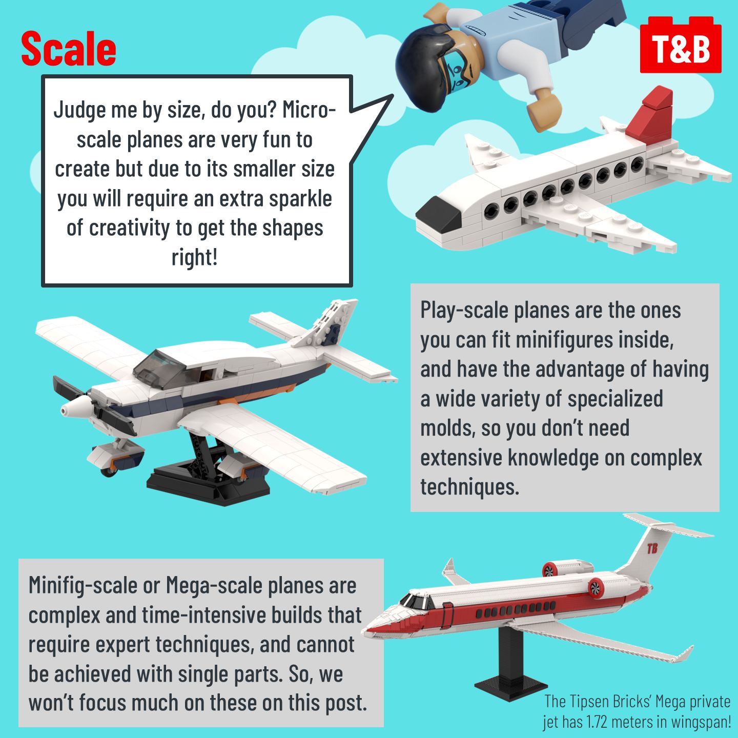 Hello, this is Captain Tipsen Bricks speaking, fasten your seatbelts because today we will go through the basics of building airplanes! In this post we’ll be covering the fundamentals of how aircraft are built, as well as different MOC scales and special parts and tricks to achieve better results.