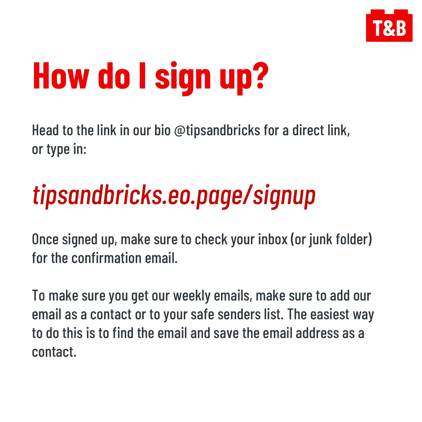 To sign up, head to: tipsandbricks.eo.page/signup