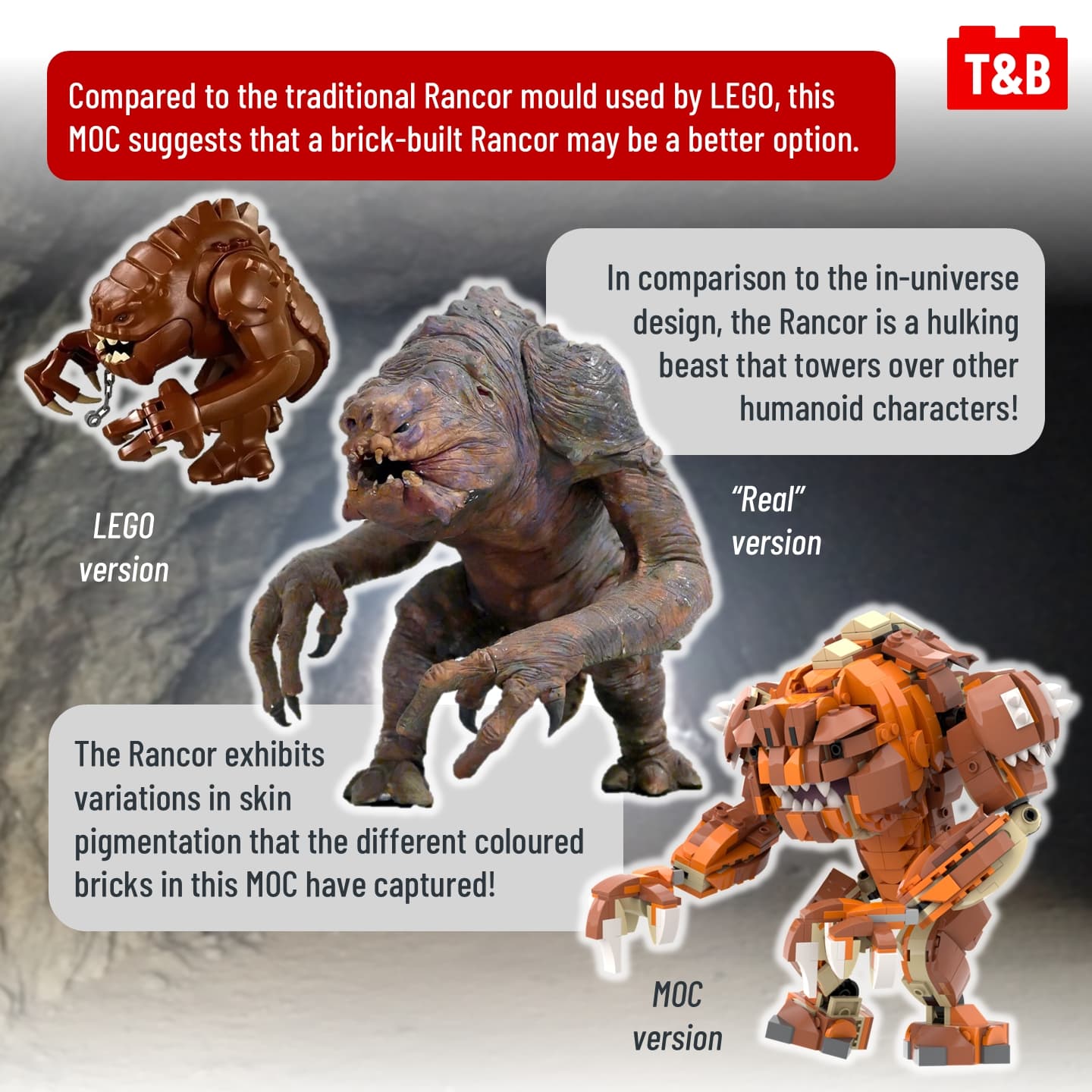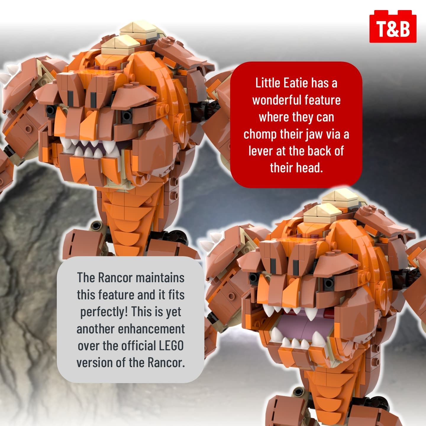 Tomasso Builds has done an incredible job turning 3 Little Eatie T-Rexs into the mighty Rancor! THis MOC comes with articulation and chomping action!