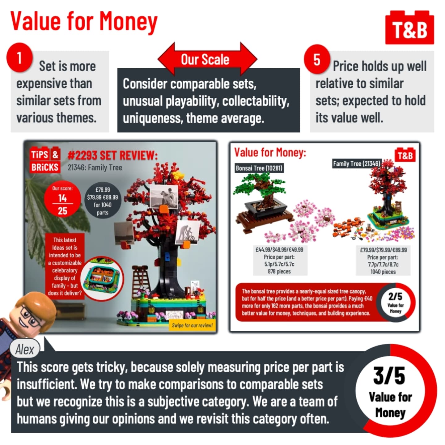 ⭕️ Value for Money: We look at more than just price per part. We try to make comparisons to comparable sets but we recognize this is a subjective category. We are a team of humans giving our opinions and we revisit this category often.