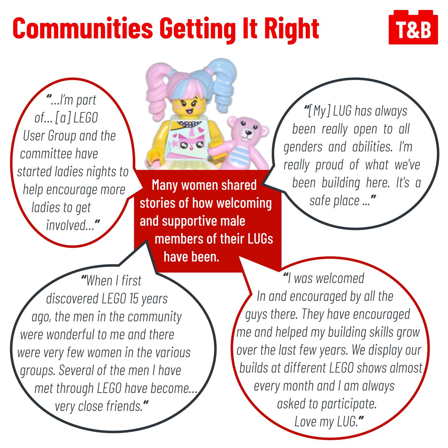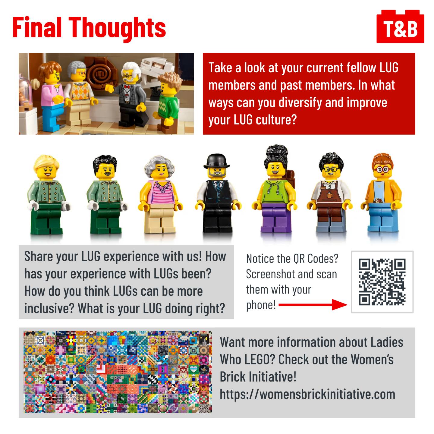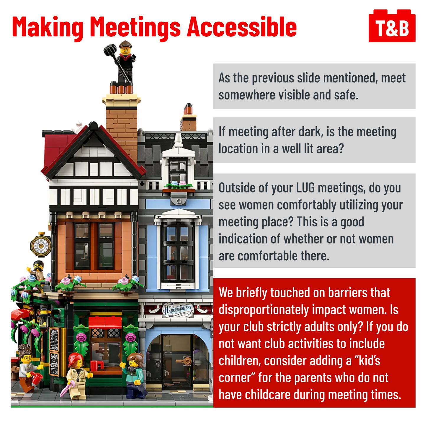 Is your LEGO User Group (LUG) struggling with recruiting and retaining female members? We discussed LUG membership with a large group of Ladies Who LEGO, and their responses may surprise you. We discuss barriers that may disproportionately impact women, making meetings accessible, and how to keep your club culture welcoming.