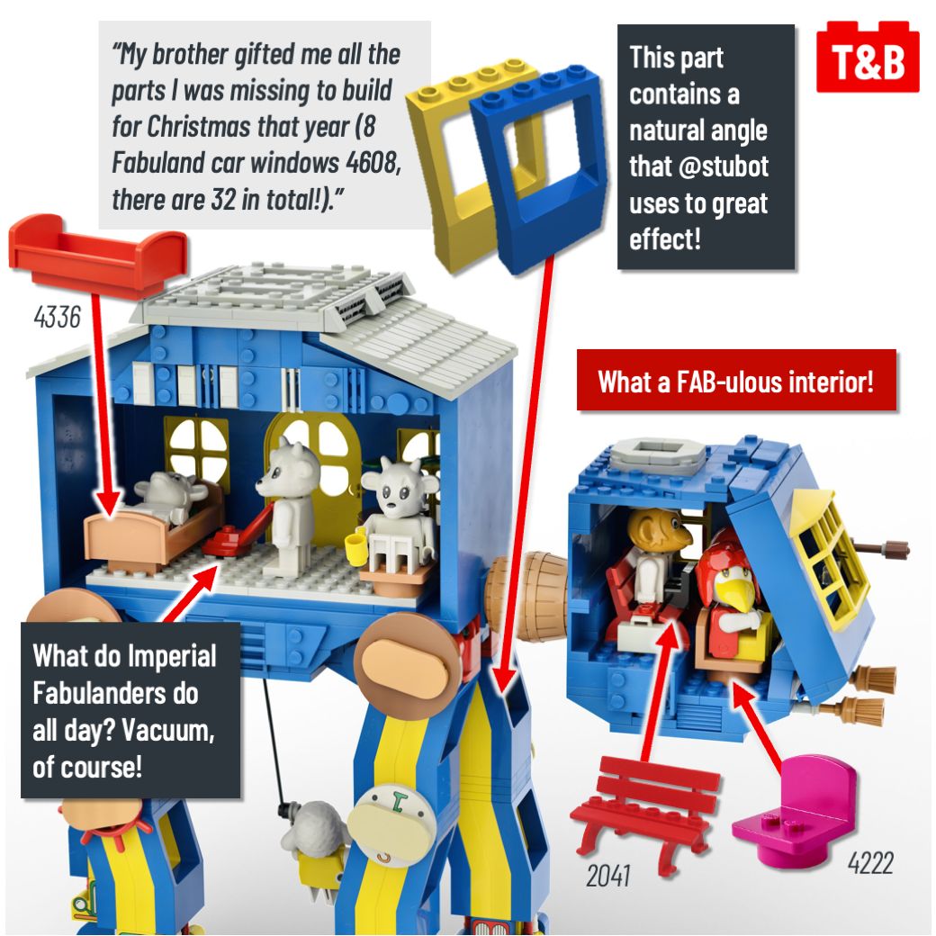 Star Wars and Fabuland? This is the collab we never knew we needed! From Fabuland windows to Fabuland brooms, the NPU (nice parts usage) on this FAB-AT-AT is FAB-ulous! Builder @stubot gave us an exclusive inside look at his bright blue armored transport.