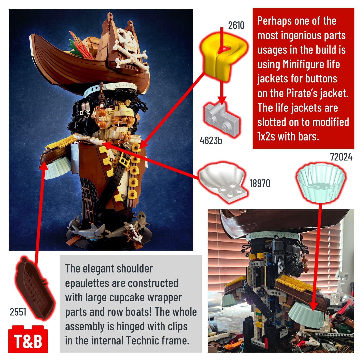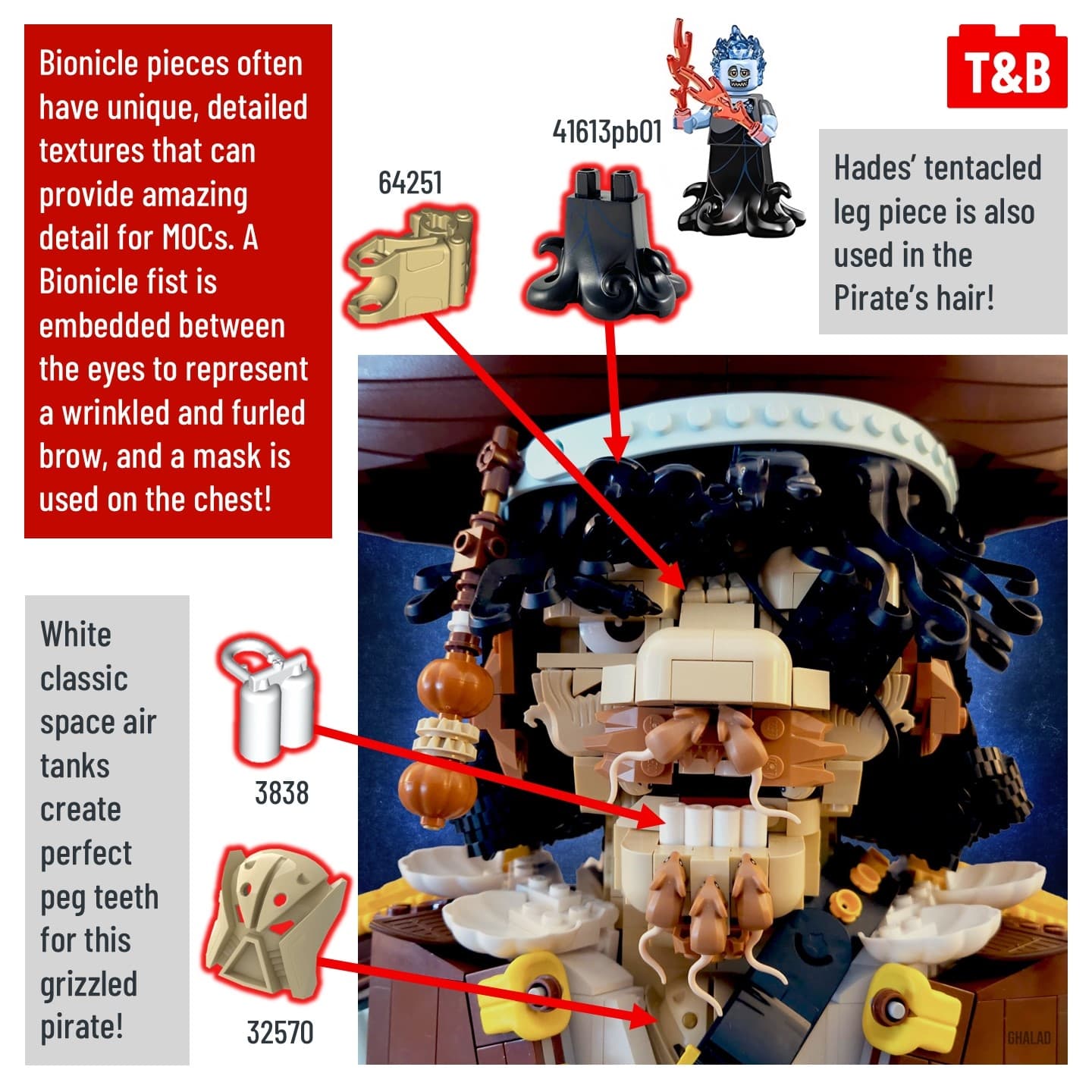 One of the most NPU heavy MOCs we’ve ever seen! A pirate bust, comprised of many nautical themed elements, and a surprising amount of LEGO animal pieces used throughout! Join us as we delve into the process of building the MOC, and how all the creative uses of parts and unique techniques come together to create this salty sea dog!