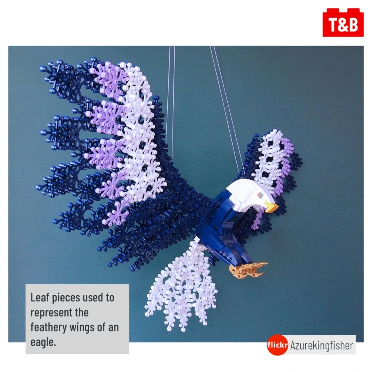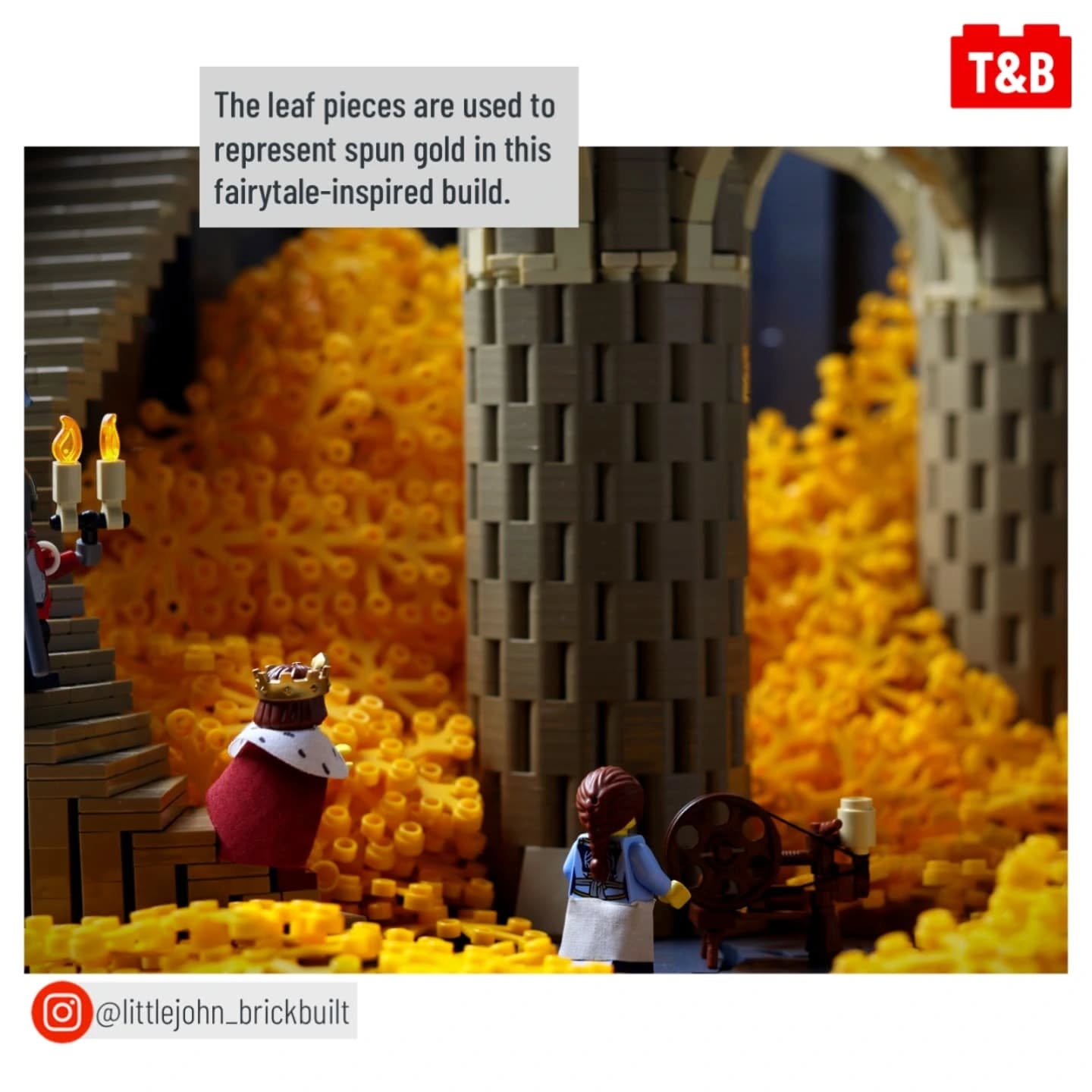 🕊️ Azurekingfisher on Flickr has used the piece both as feathery wings and as intricate, delicate hanging ornaments. Meanwhile, @littlejohn_brickbuilt uses leaf pieces to represent spun gold, and Katie Walker on Flickr uses interesting connection points to join the pieces at dynamic and interesting angles.