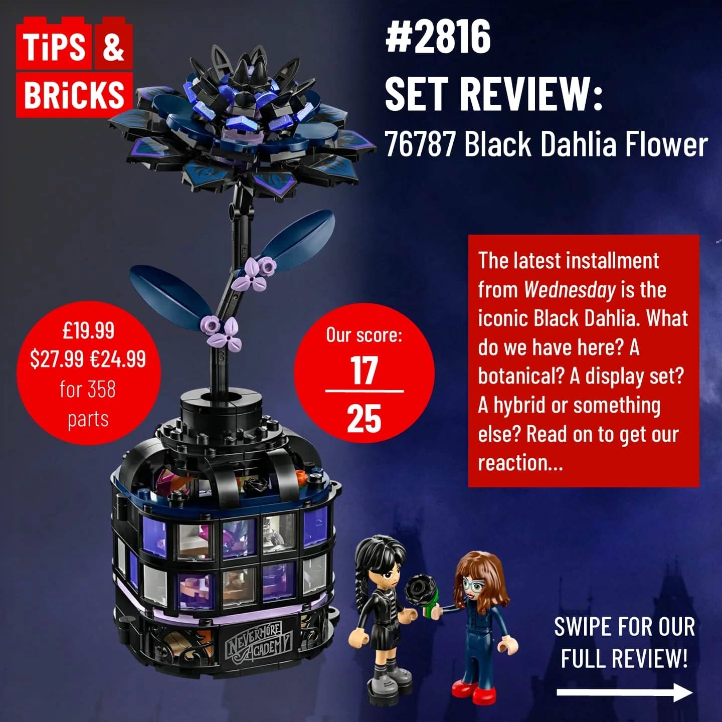 Today’s review brings us back to Nevermore, where Wednesday is now joined by Ms. Thornhill who gifted her a lovely black dahlia flower, “named after her favourite unsolved murder.”