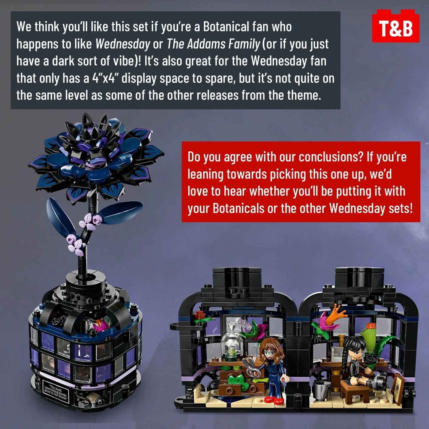 This set has a hard time deciding what it wants to be. It’s part Botanical, part display piece, inside a vase… or the Conservatory? It’s a tough needle to thread, but we’ll take you inside to see whether or not they were able to pull it off.