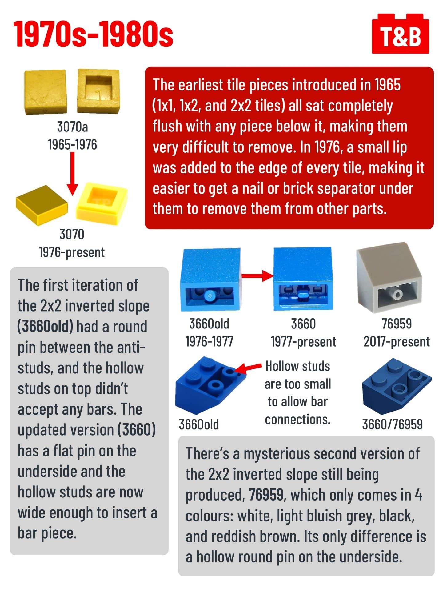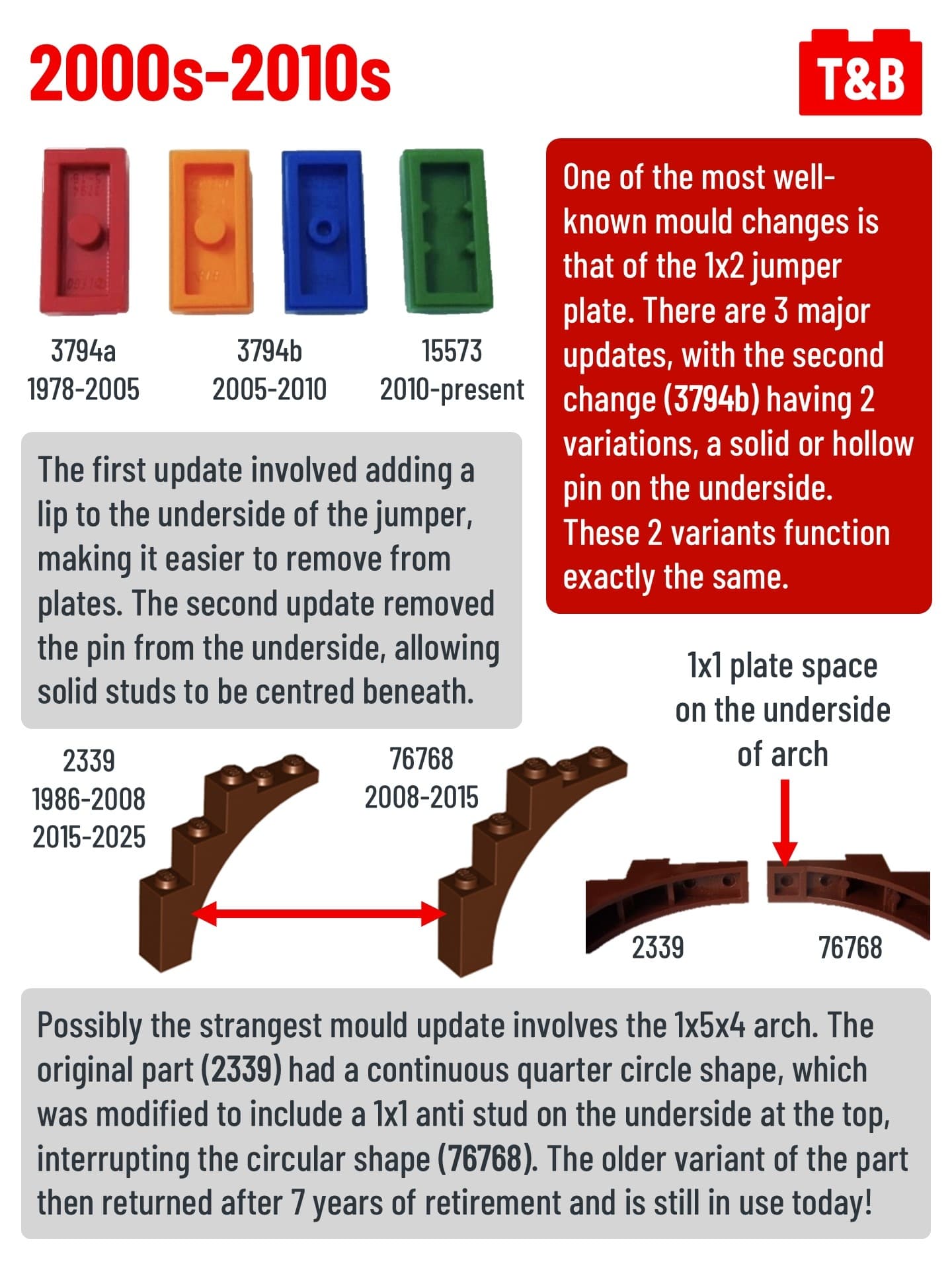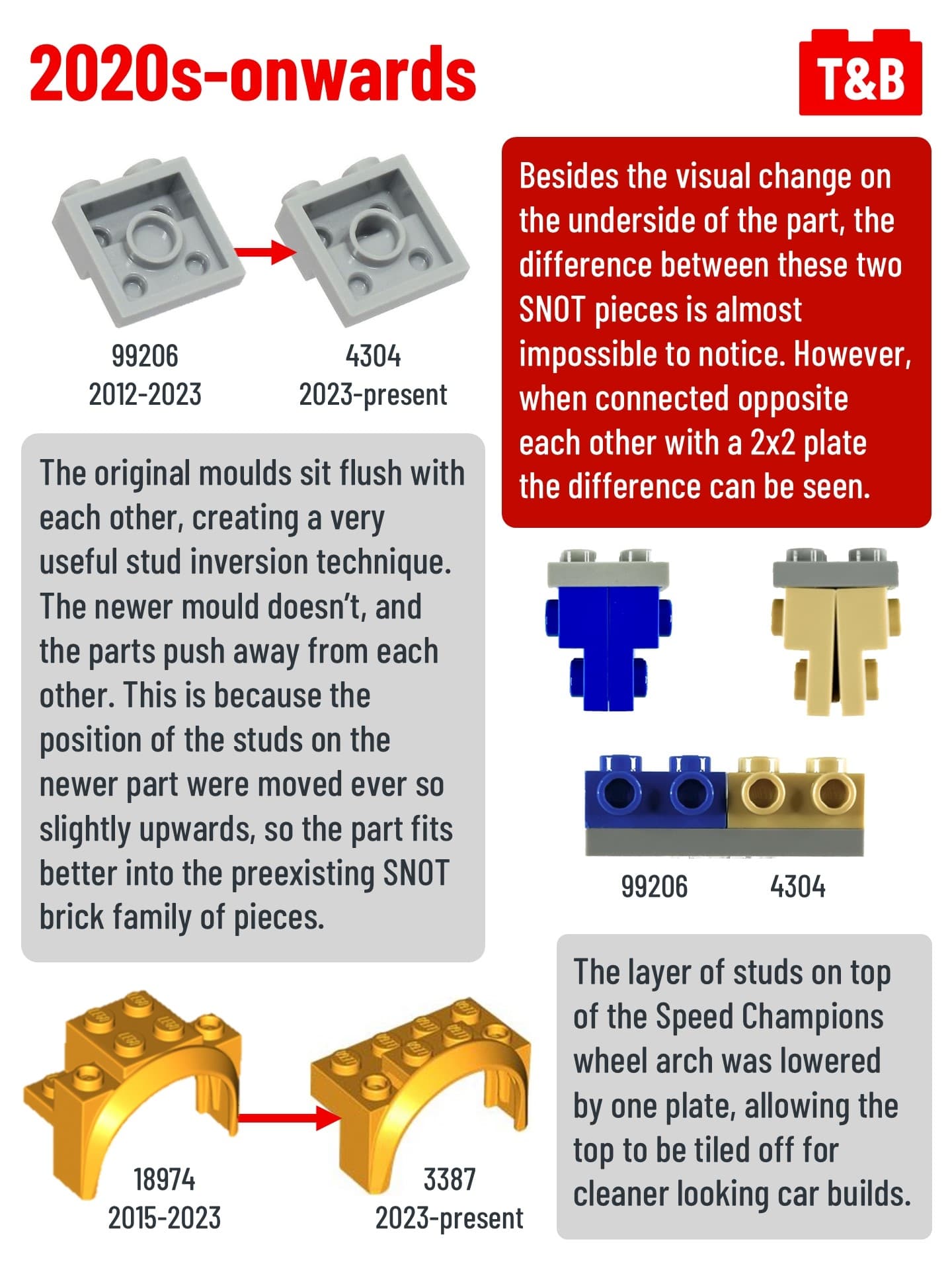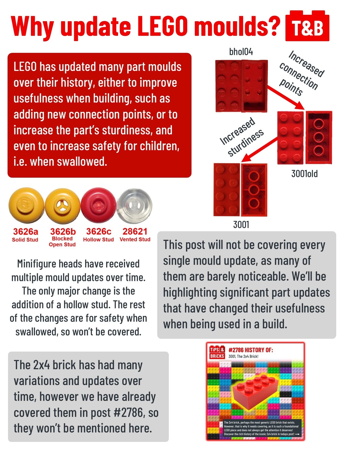 Have you ever noticed small differences in the same LEGO part? This is because LEGO updates mould overtime to fit their increasing standards over the years, such as increasing usefulness, stability, and safety for children.