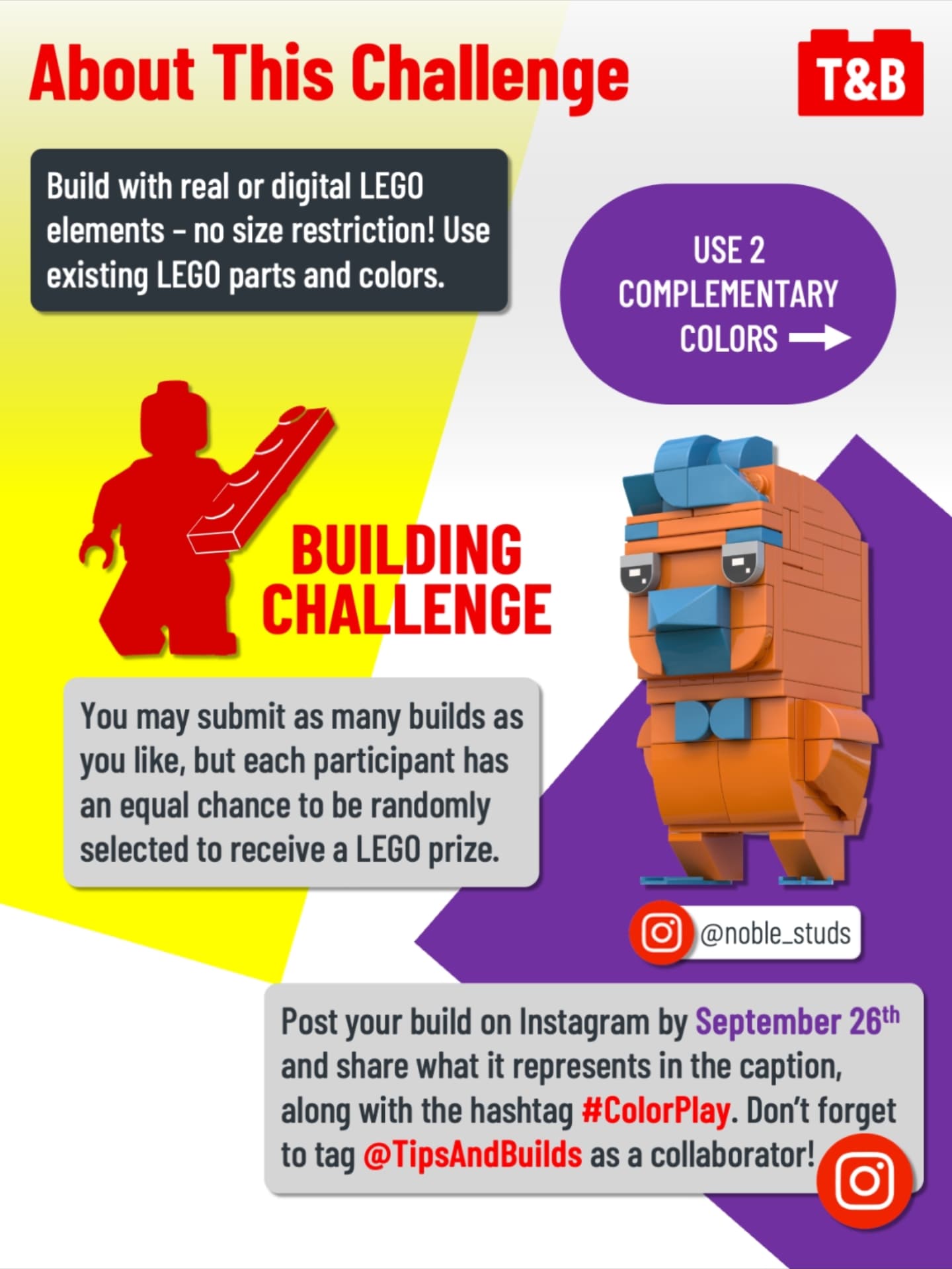 1️⃣ Post a LEGO build that uses 2 complementary colors on Instagram by September 26th