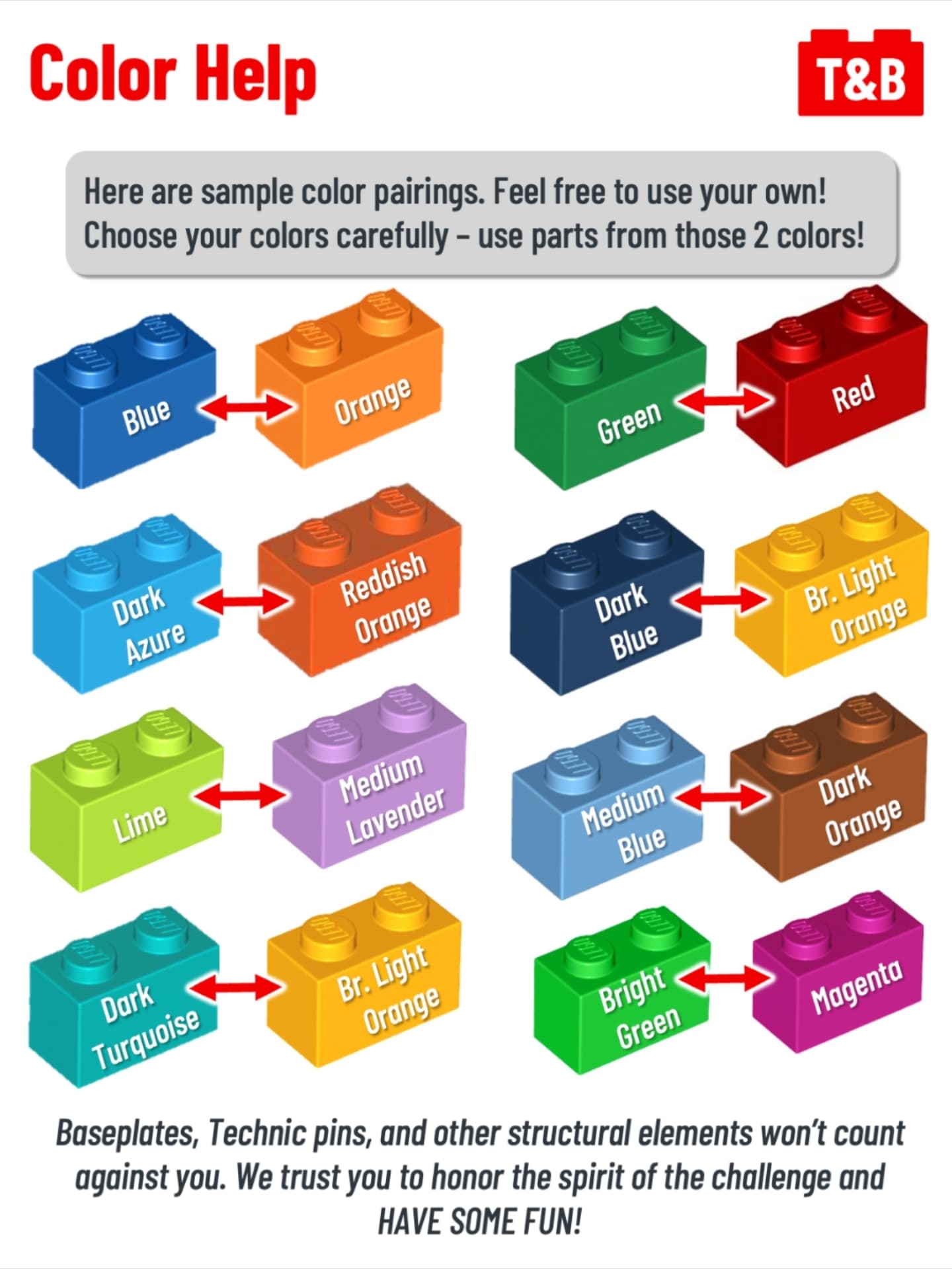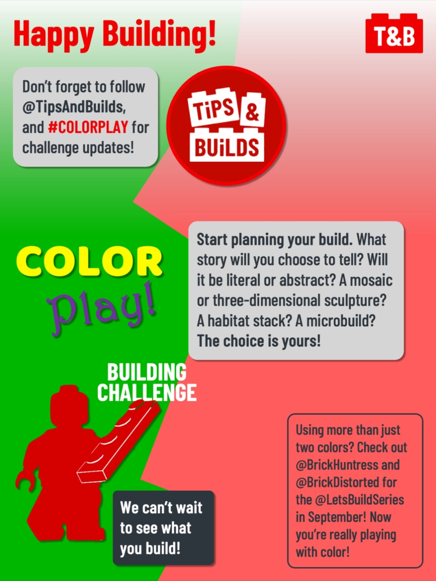 And if you find yourself wanting to use more than just two colors, check out the just-launched challenge by @BrickHuntress and @BrickDistorted for the @LetsBuildSeries in September! Now you’re really playing with color!