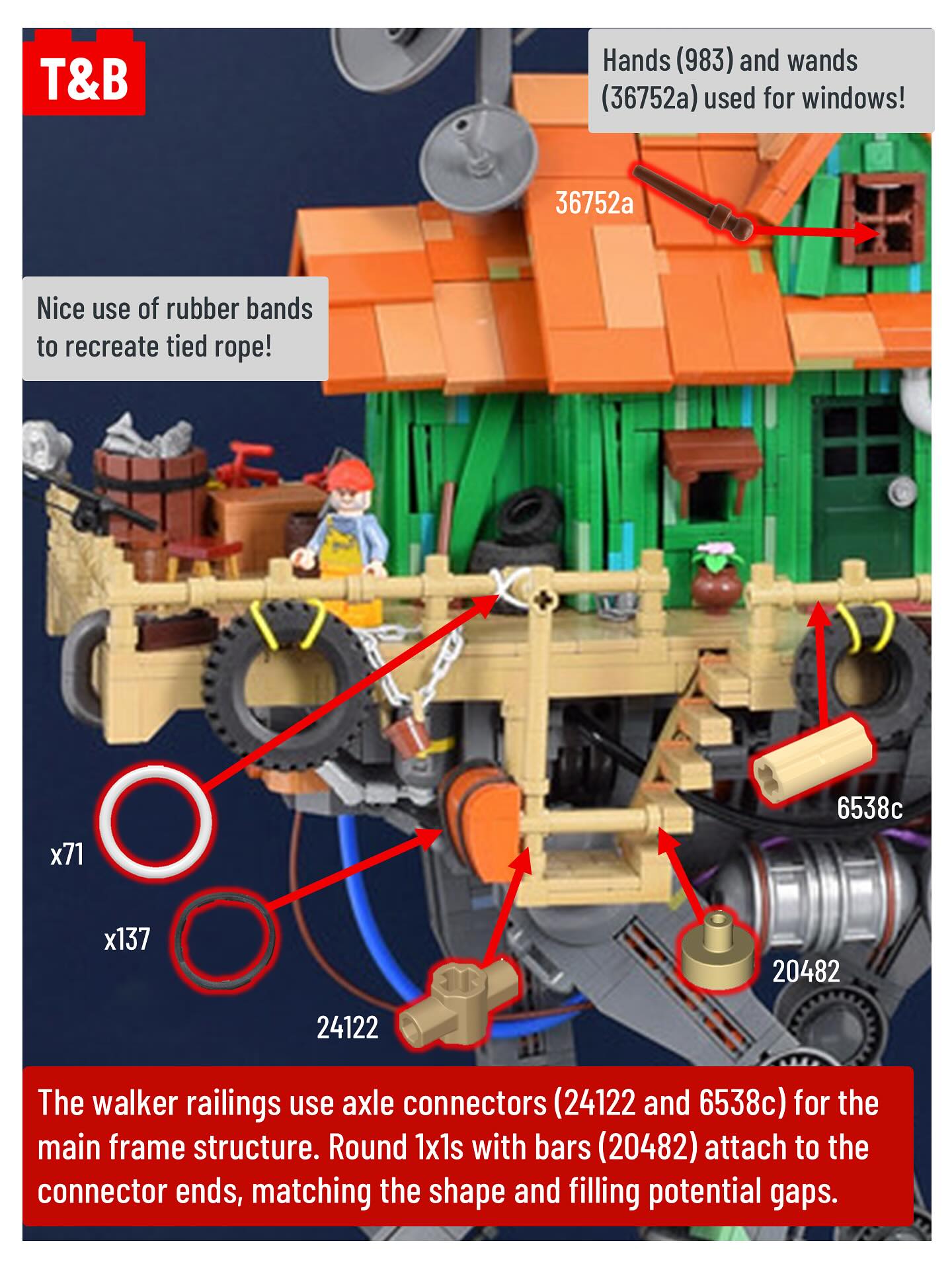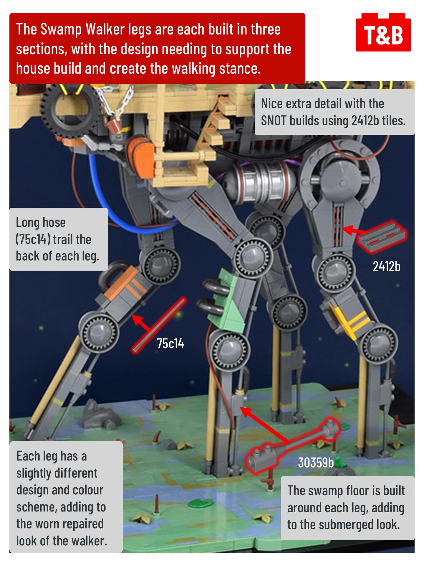 For today’s breakdown, we’re looking at a fishing shack with a new sci-fi twist – this hut is built on top of a large swamp walker, designed for wading through deep swamp water! This build by