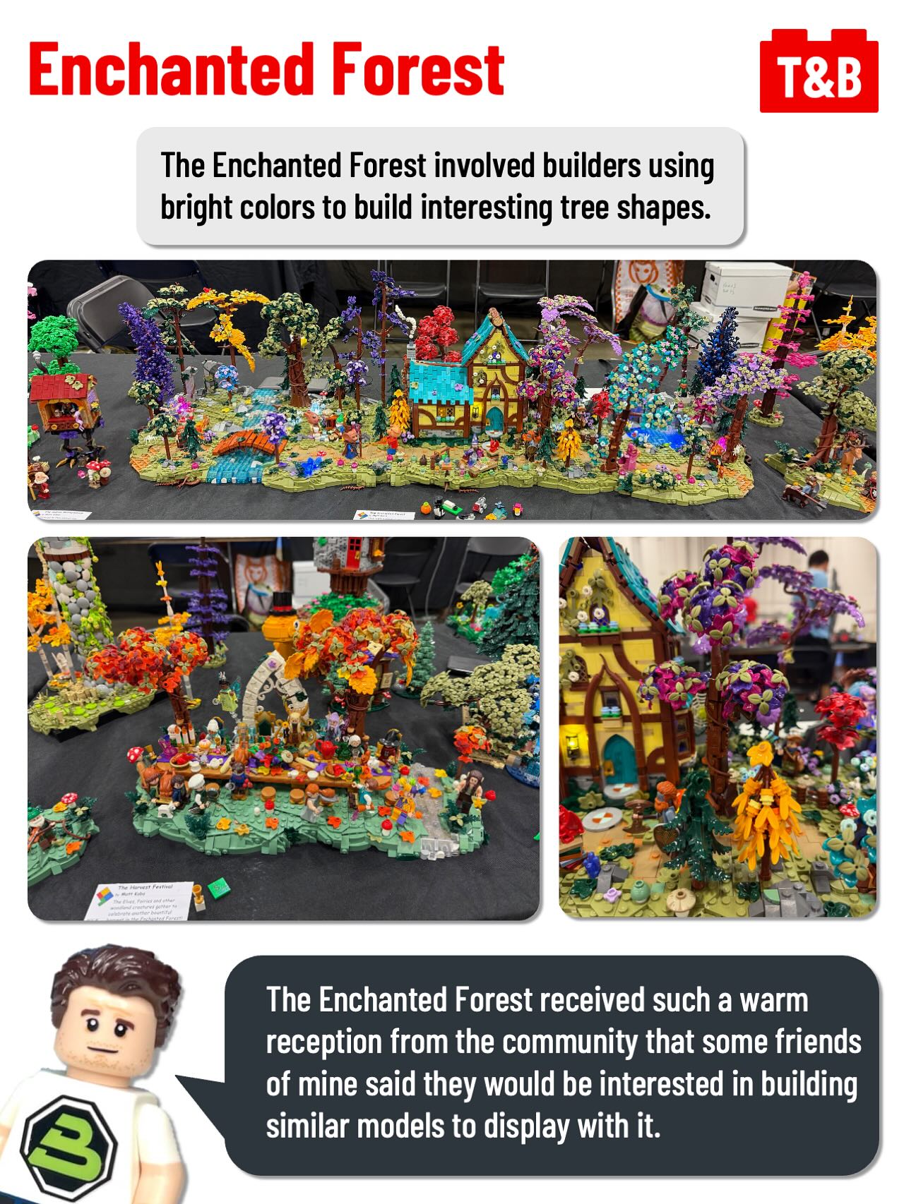The Enchanted Forest involved builders using bright colors to build interesting tree shapes.