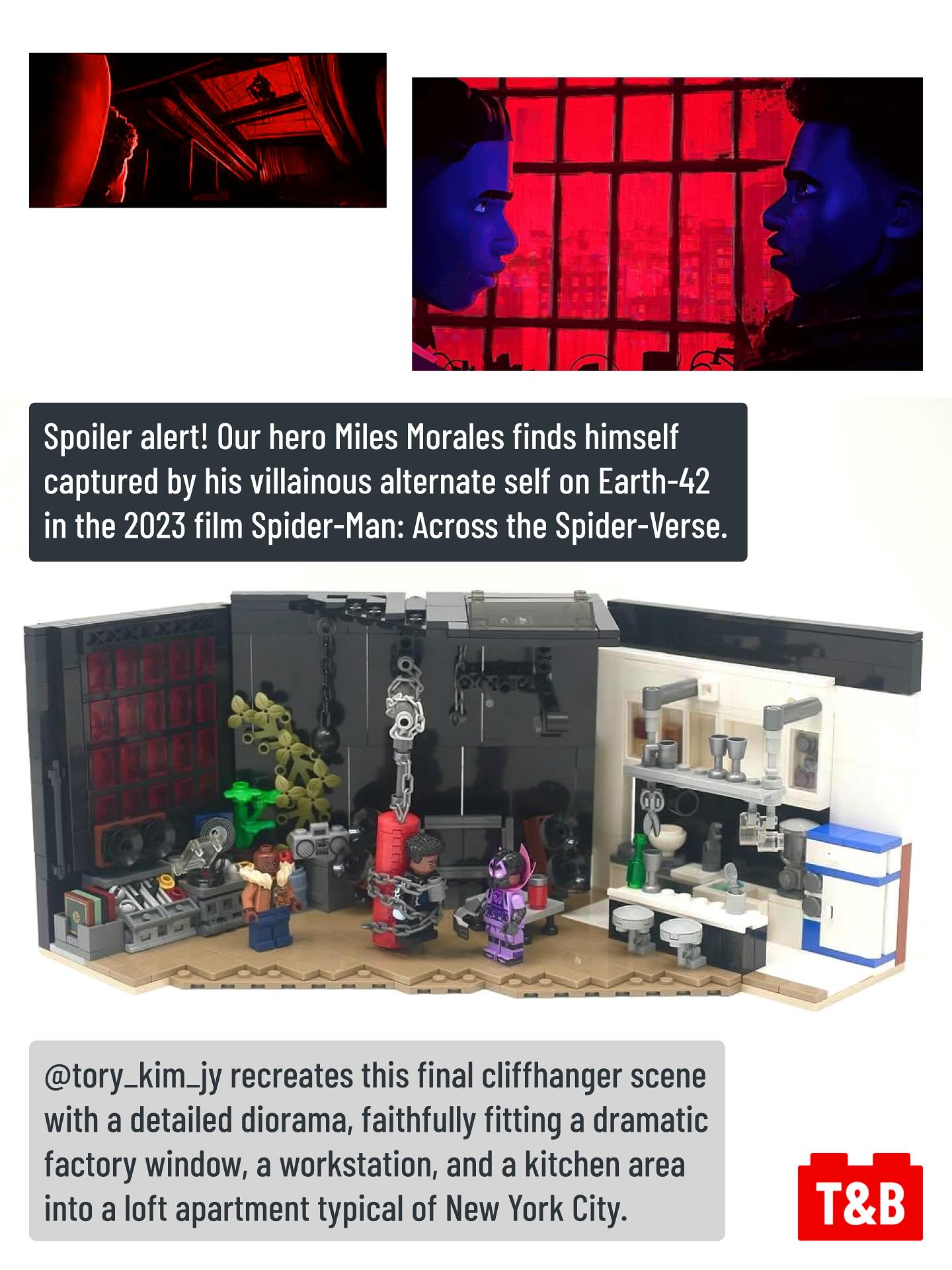 Spider-Man: Across the Spider-Verse’s cliffhanger scene, recreated in an epic diorama. Come for the drama, stay for the tiny details in the loft!