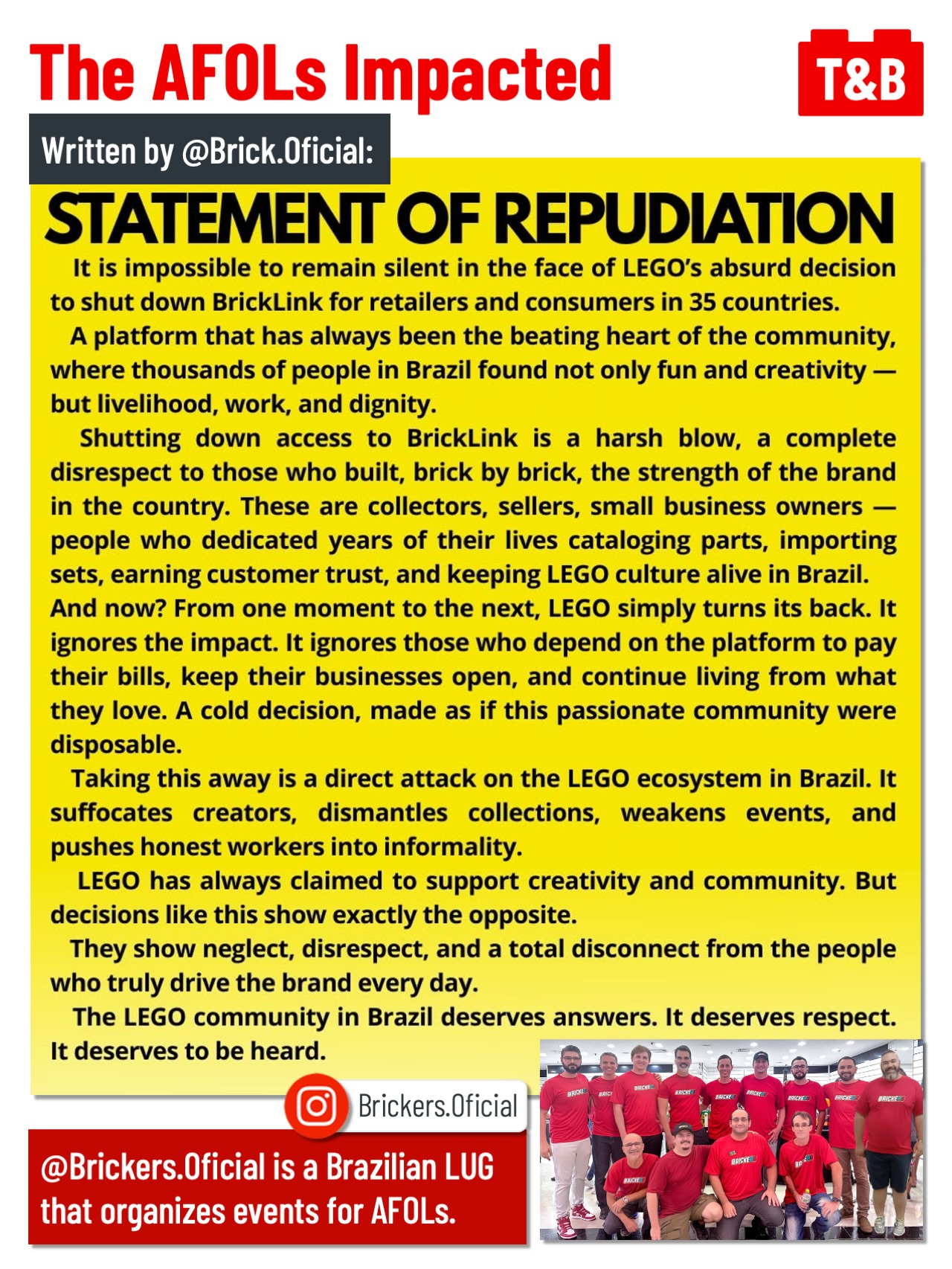 We stand behind the statement made by @Brickers.Oficial – a Brazilian LUG that organizes events for AFOLs. We also stand with @legolandkharkiv and the statements they have shared.