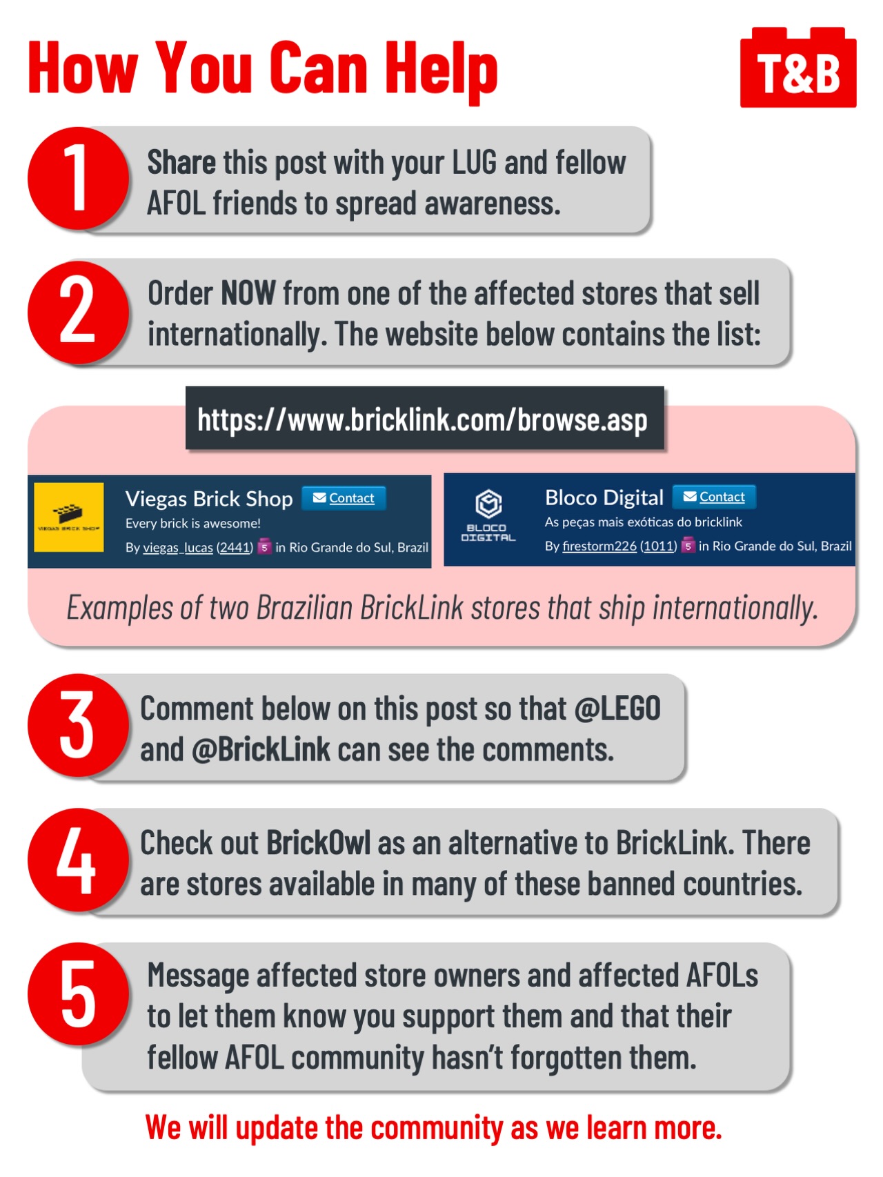 5️⃣Message affected store owners and affected AFOLs to let them know you support them and that their fellow AFOL community hasn’t forgotten them.