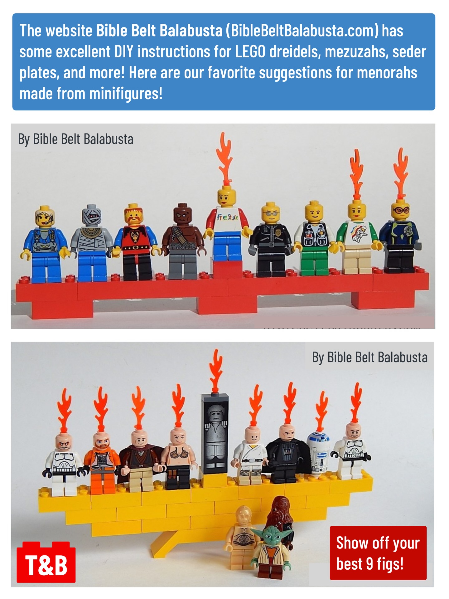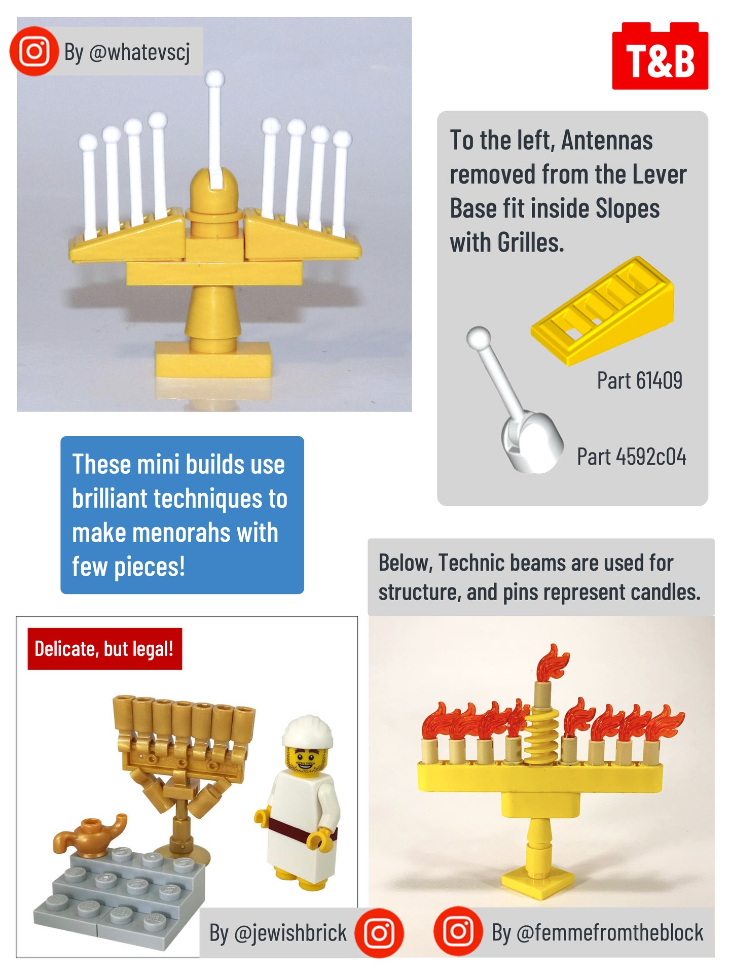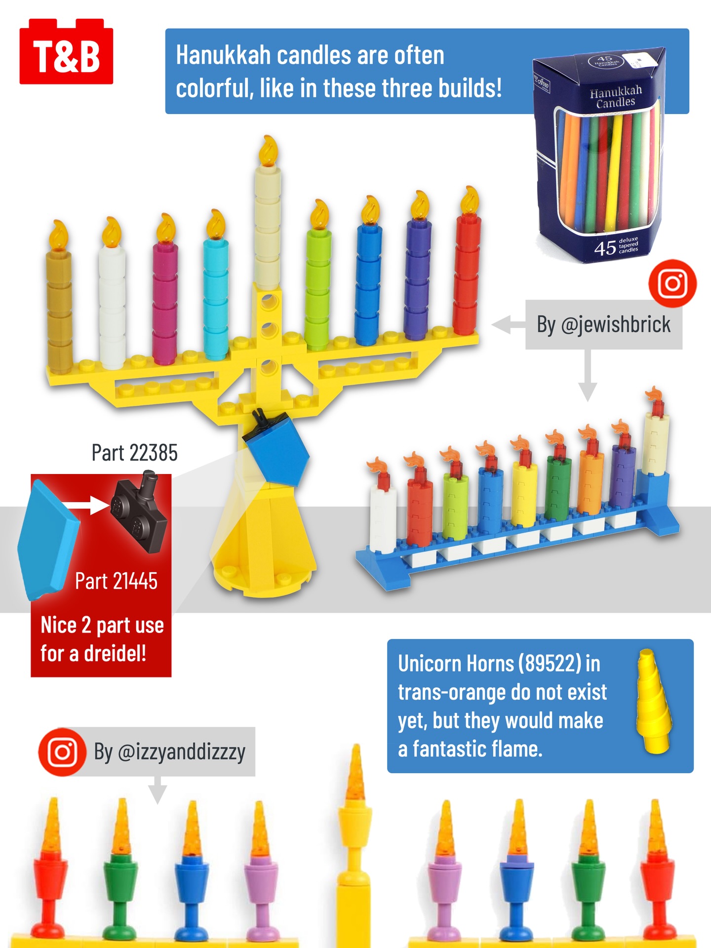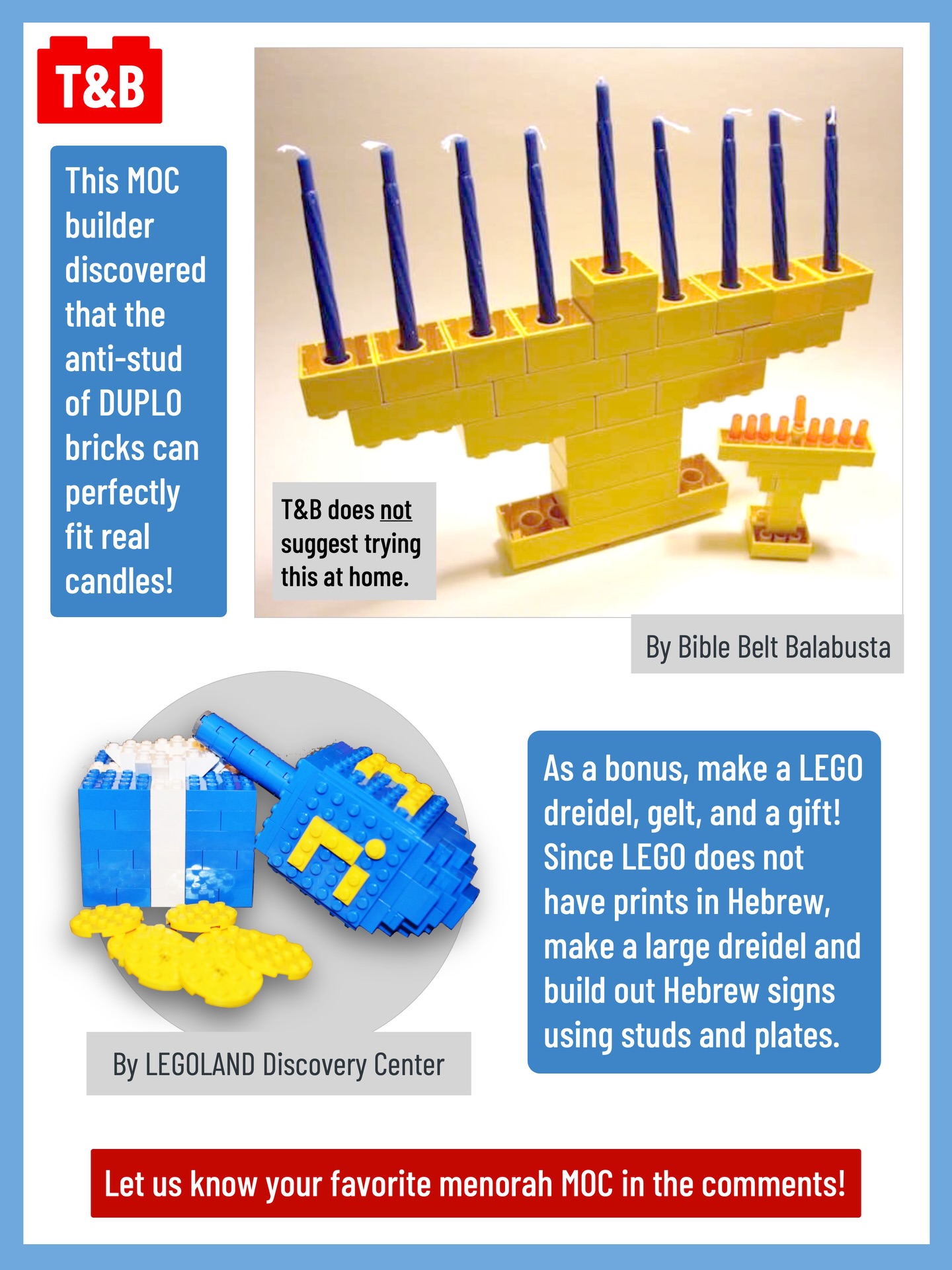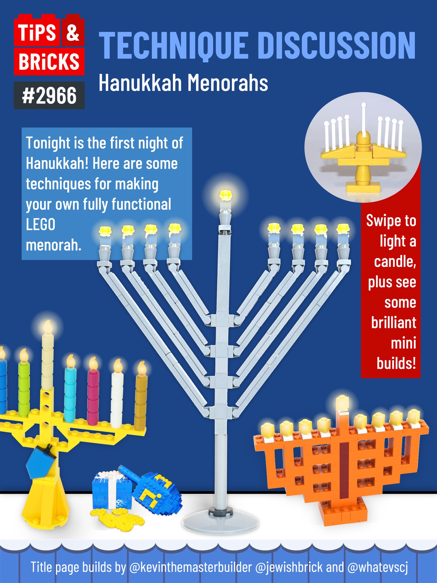 Take a look at these techniques to build your own LEGO menorah, and have a wonderful first night of Hanukkah!
