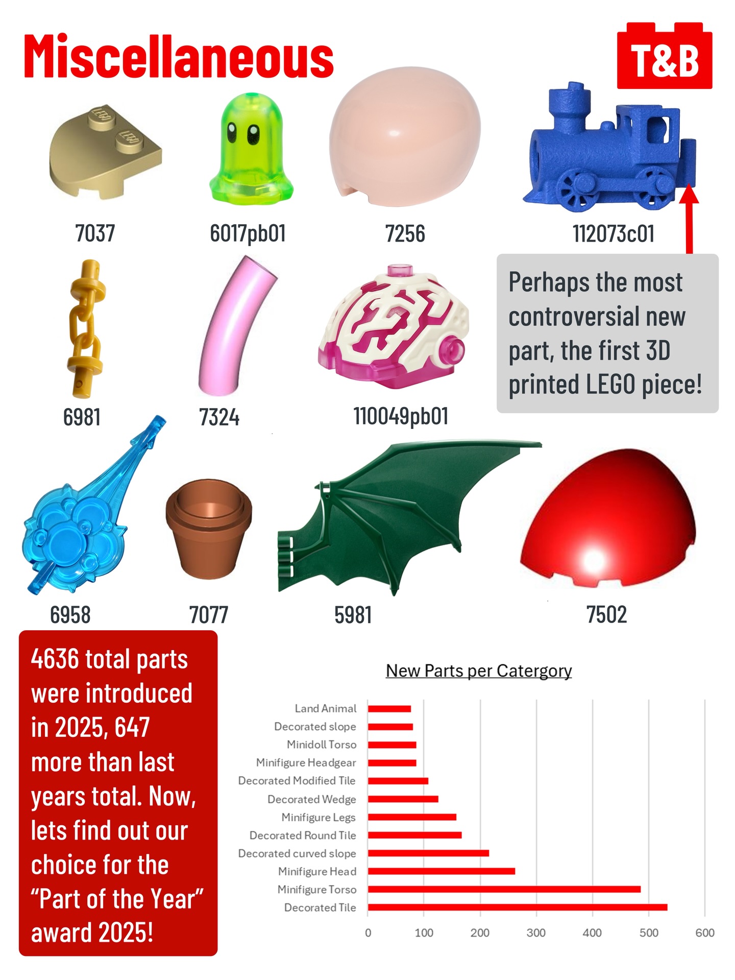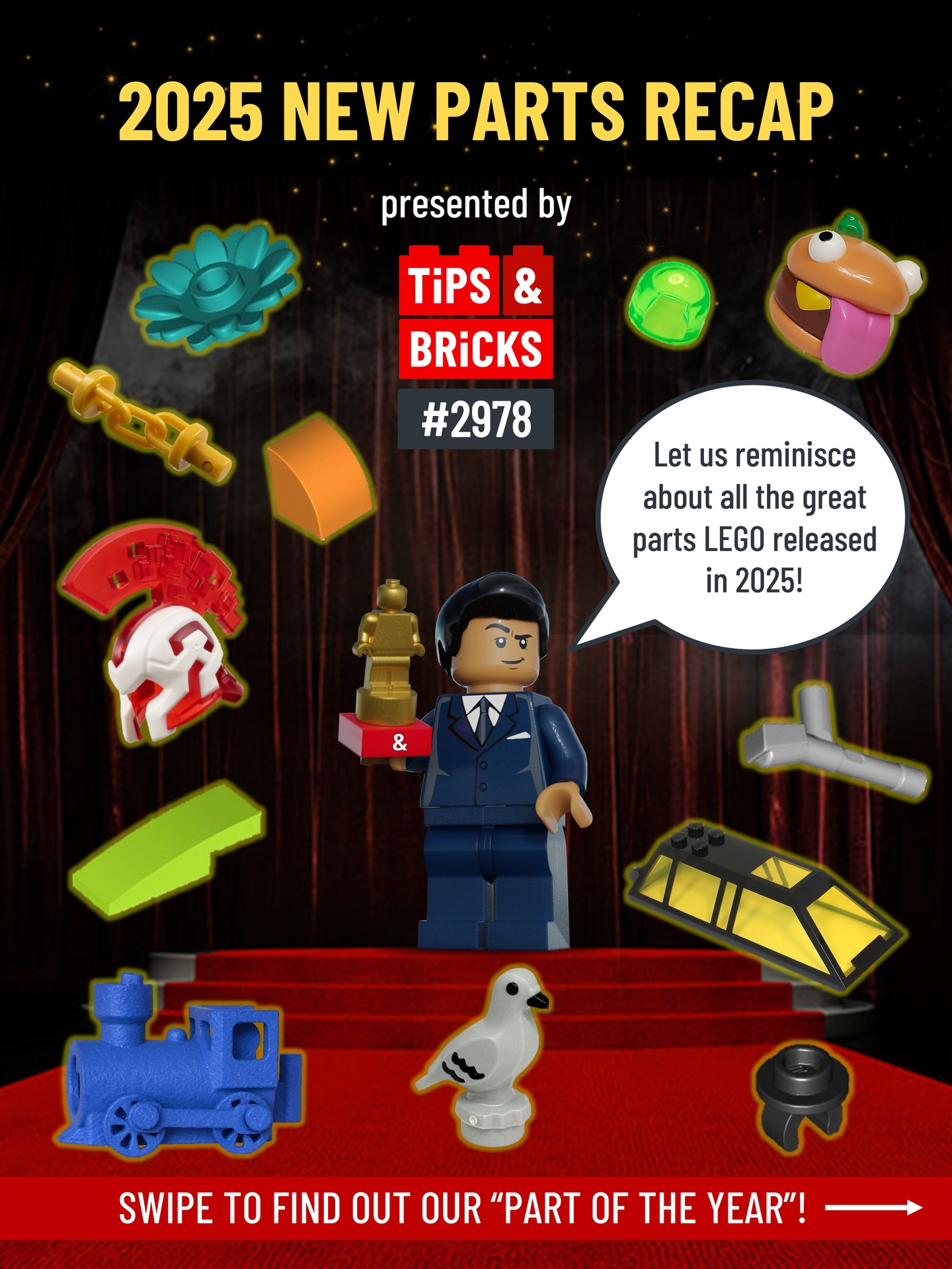 What a great year for parts! Let’s take a look back at all the new, useful, bizarre, and detailed pieces that were released in 2025. Find out Tips&Bricks’ favourite part of the year on the last slide! What is your favourite piece released in 2025? Let us know in the comments!