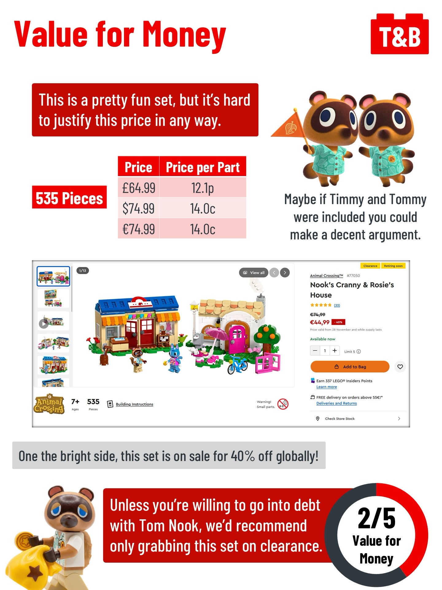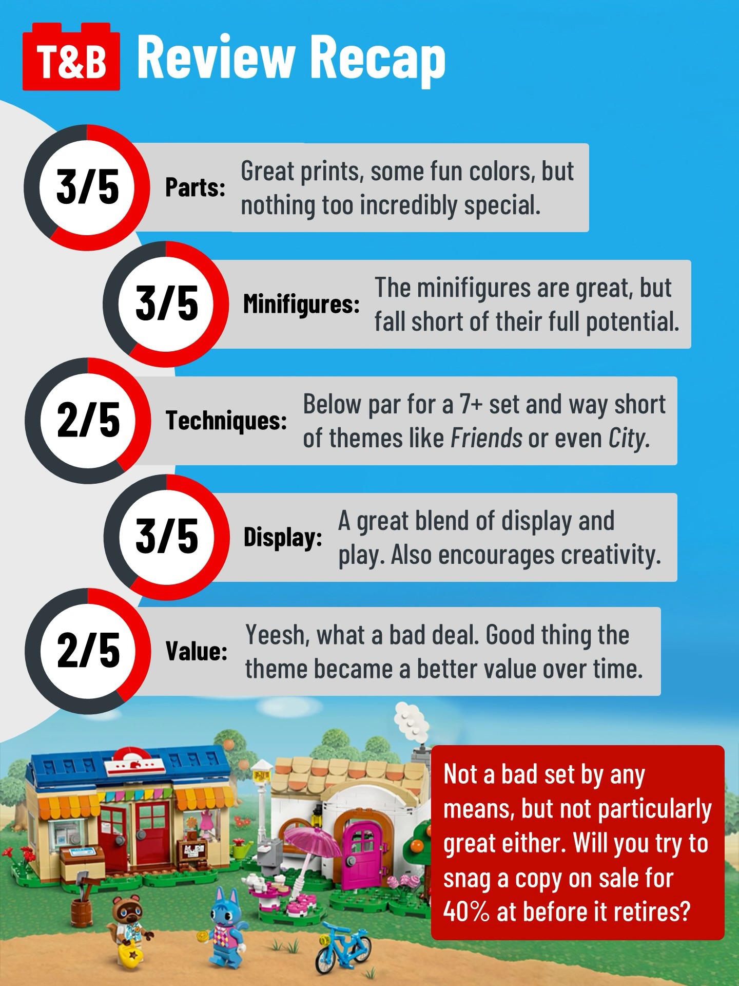 Just in time for its retirement, we’re finally taking a look at 77050 Nook’s Cranny & Rosie’s House! This was the largest set available at the line’s launch, but we’re honestly not too impressed with what you get for that $74.99 price.
