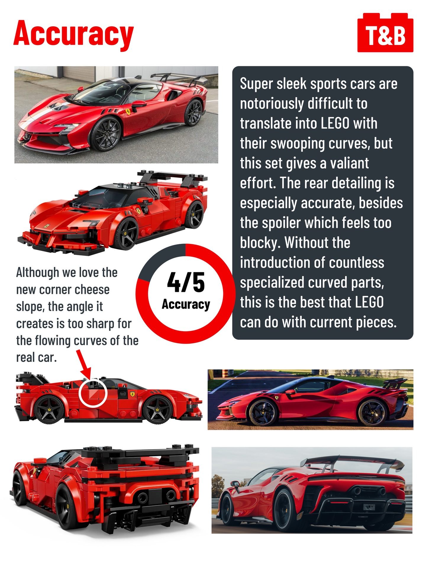 🏎️Accuracy: 4/5 – Sports cars are hard to recreate in LEGO, but this set does a good job.